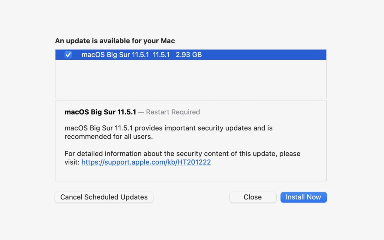 Apple ได้ปล่อย macOS Big Sur 11.5.1 ให้ผู้ใช้อัปเดต โดยในเวอร์ชันนี้อัปเดตความปลอดภัยที่สำคัญ ผู้ใช้ Mac รุ่นรองรับ อัปเดตได้เลย