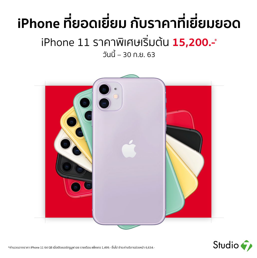 พิเศษที่สุด! iPhone 11 ราคาเริ่มต้น 15,200.-* วันนี้ – 30 ก.ย. 63 ที่ Studio 7 สาขาใกล้บ้าน หรือช้อปออนไลน์ iPhone 11 > https://bit.ly/2H9RBct