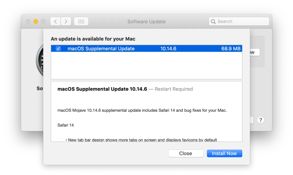 macOS Mojave 10.14.6 (Supplemental Update) เปิดให้อัปเดตสำหรับคนที่ติดตั้ง Security Update 2020-00, และ Apple ก็ได้ปล่อยอัปเดต Safari 14 สำหรับ macOS Mojave ใหม่อีกครั้ง โดยเป็นตัวแก้ปัญหาต่าง ๆ จากเวอร์ชันก่อนหน้า