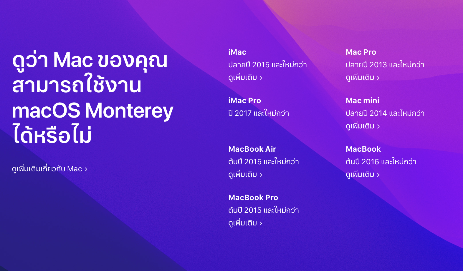 อ่านข้อมูลเพิ่มเติมเกี่ยวกับ macOS Monterey