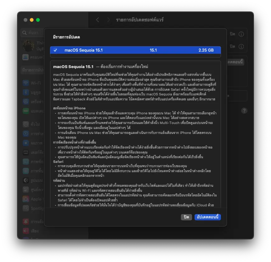 อัปเดตเป็น macOS Sequoia 15.1