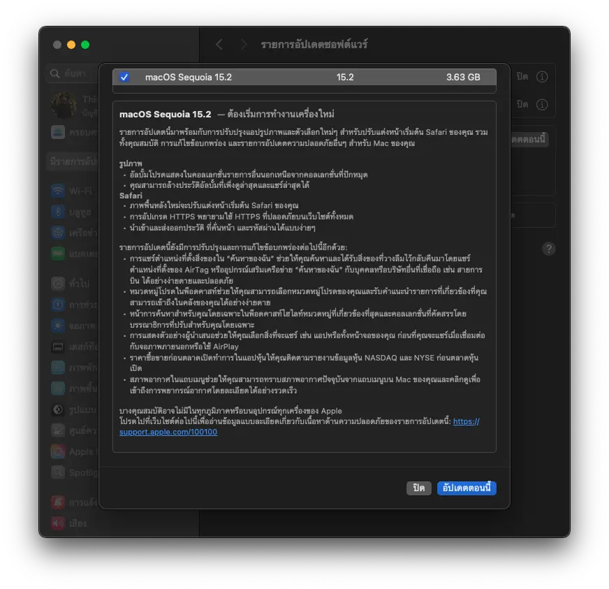 รายละเอียดอัปเดต macOS Sequoia 15.2