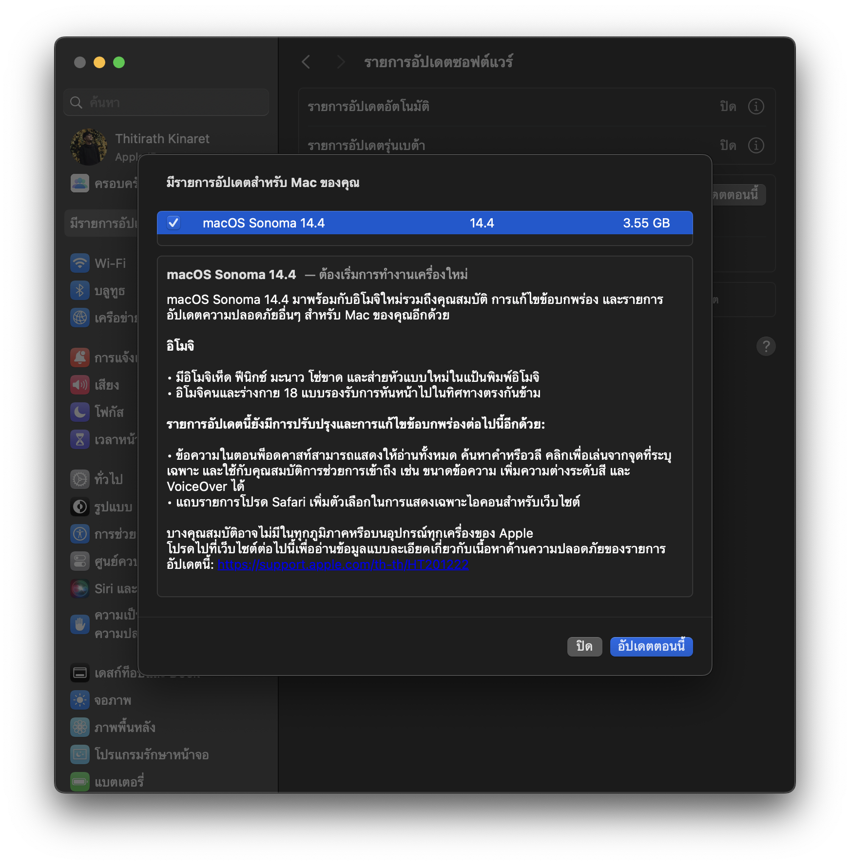 Apple ปล่อยอัปเดต macOS Sonoma 14.4 ให้ผู้ใช้ทั่วไปได้อัปเดตแล้ว รอบนี้มีการอัปเดตไม่เยอะมาก เช่น อิโมจิใหม่ และการแก้ปัญหาต่าง ๆ