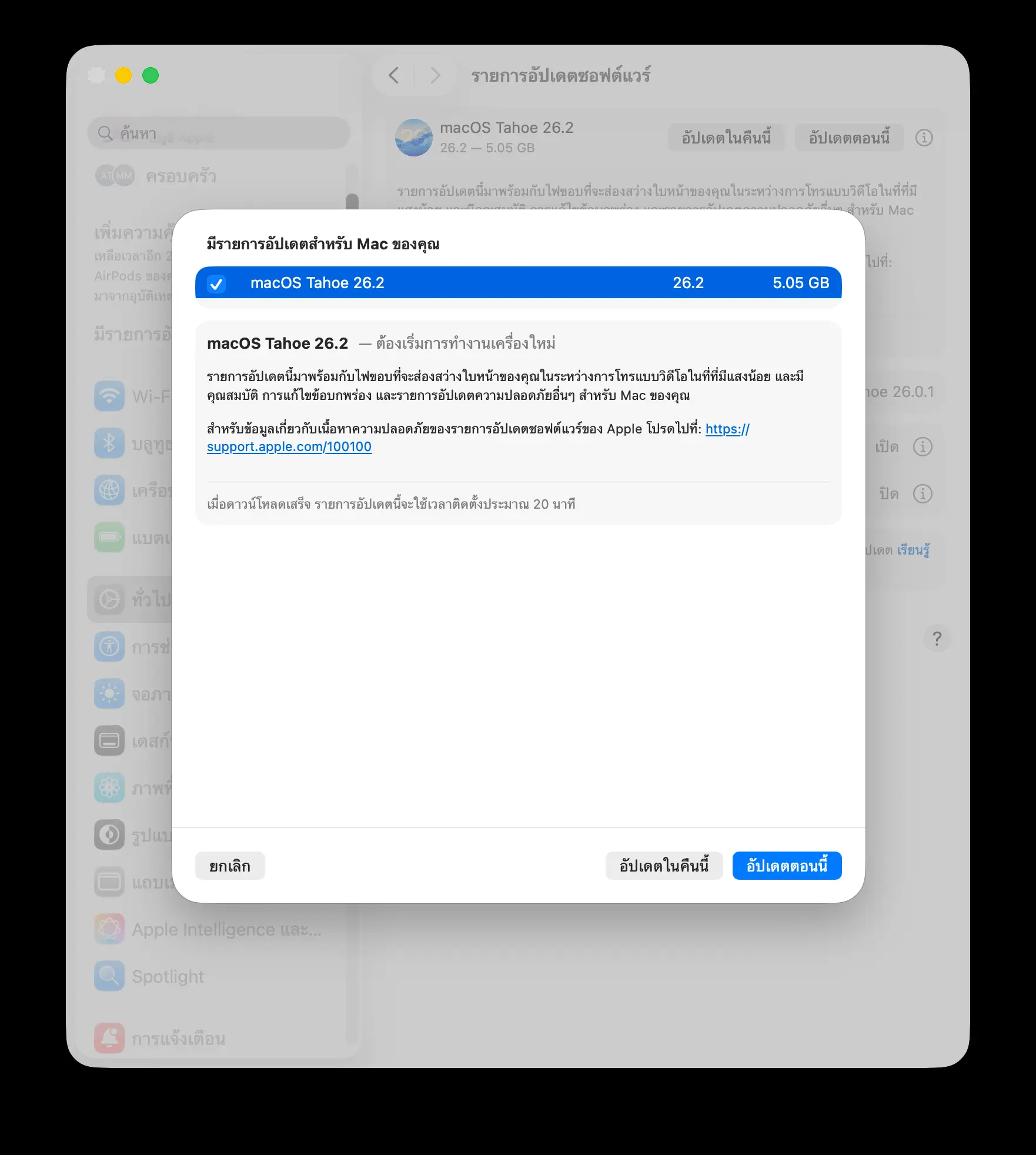 Apple ปล่อยอัปเดต macOS Tahoe 26.2 ให้ผู้ใช้อัปเดตแล้ว มาพร้อมฟีเจอร์ใหม่อย่าง ไฟขอบ (Edge Light) ที่ใช้จอ Mac เป็นไฟส่องหน้าระหว่างสนทนาวิดีโอได้