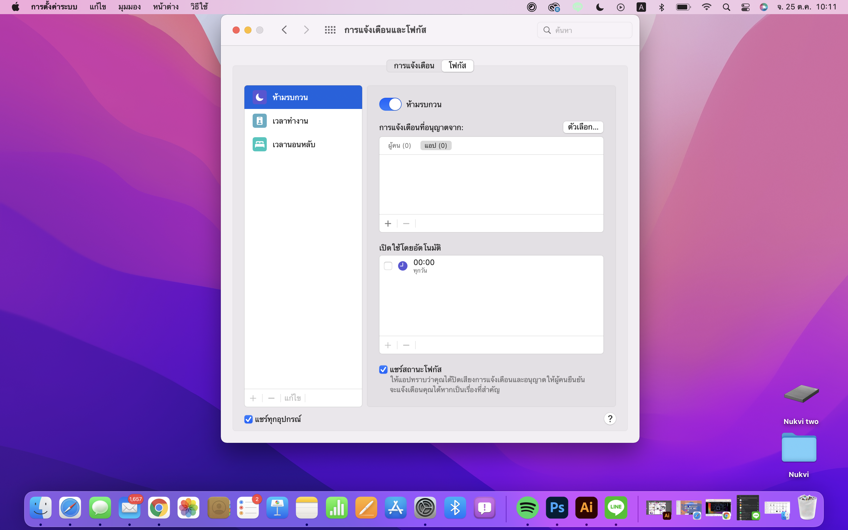 เมื่อเปิดโหมด Focus อุปกรณ์อื่น ๆ ทั้งหมด