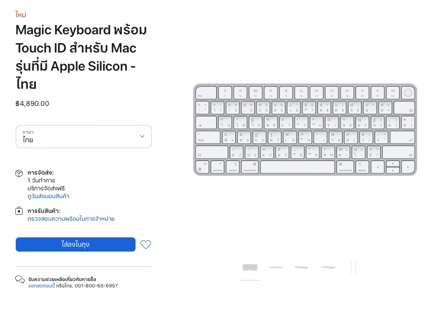 Magic Keyboard พร้อม Touch ID ราคา 4,890 บาท (สั่งซื้อ)