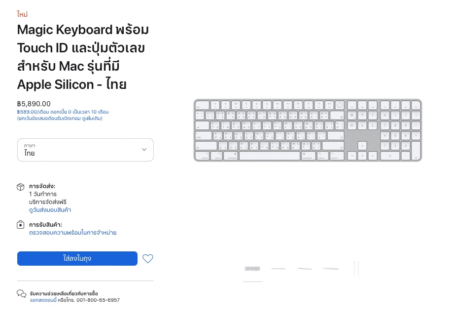 Magic Keyboard พร้อม Touch ID และปุ่มตัวเลข ราคา 5,890 บาท (สั่งซื้อ)