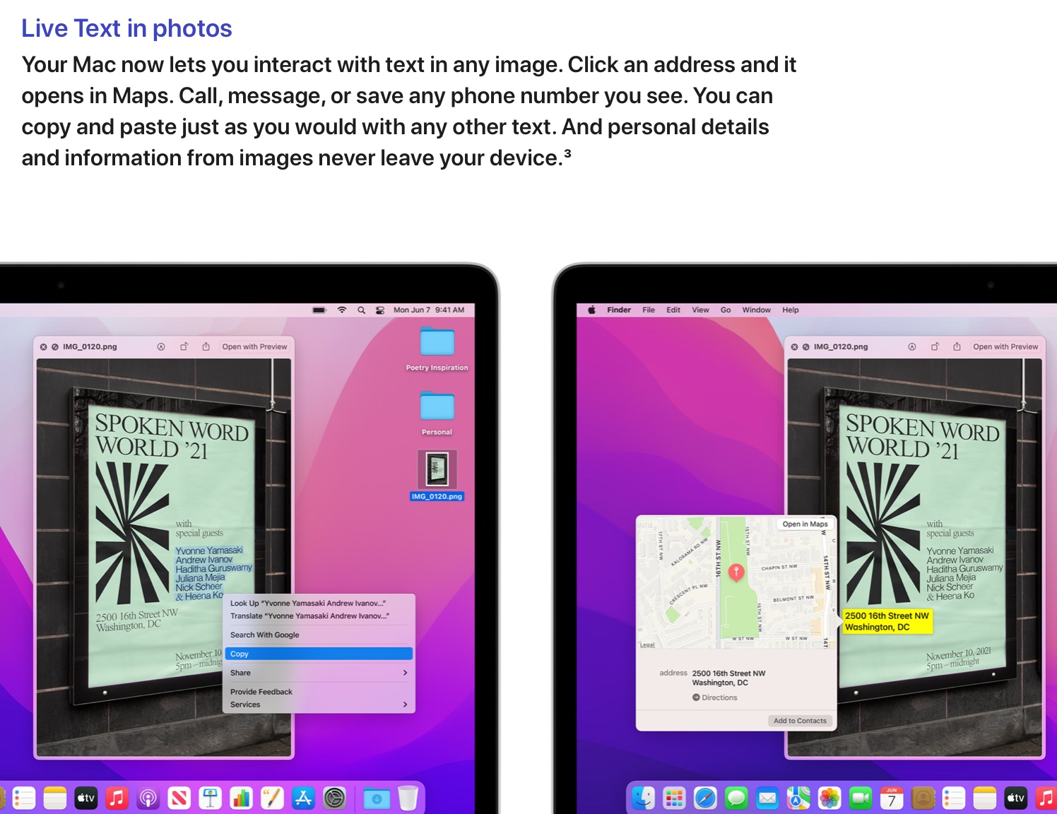 - Live Text สำหรับการดึงข้อความออกมาจากภาพ