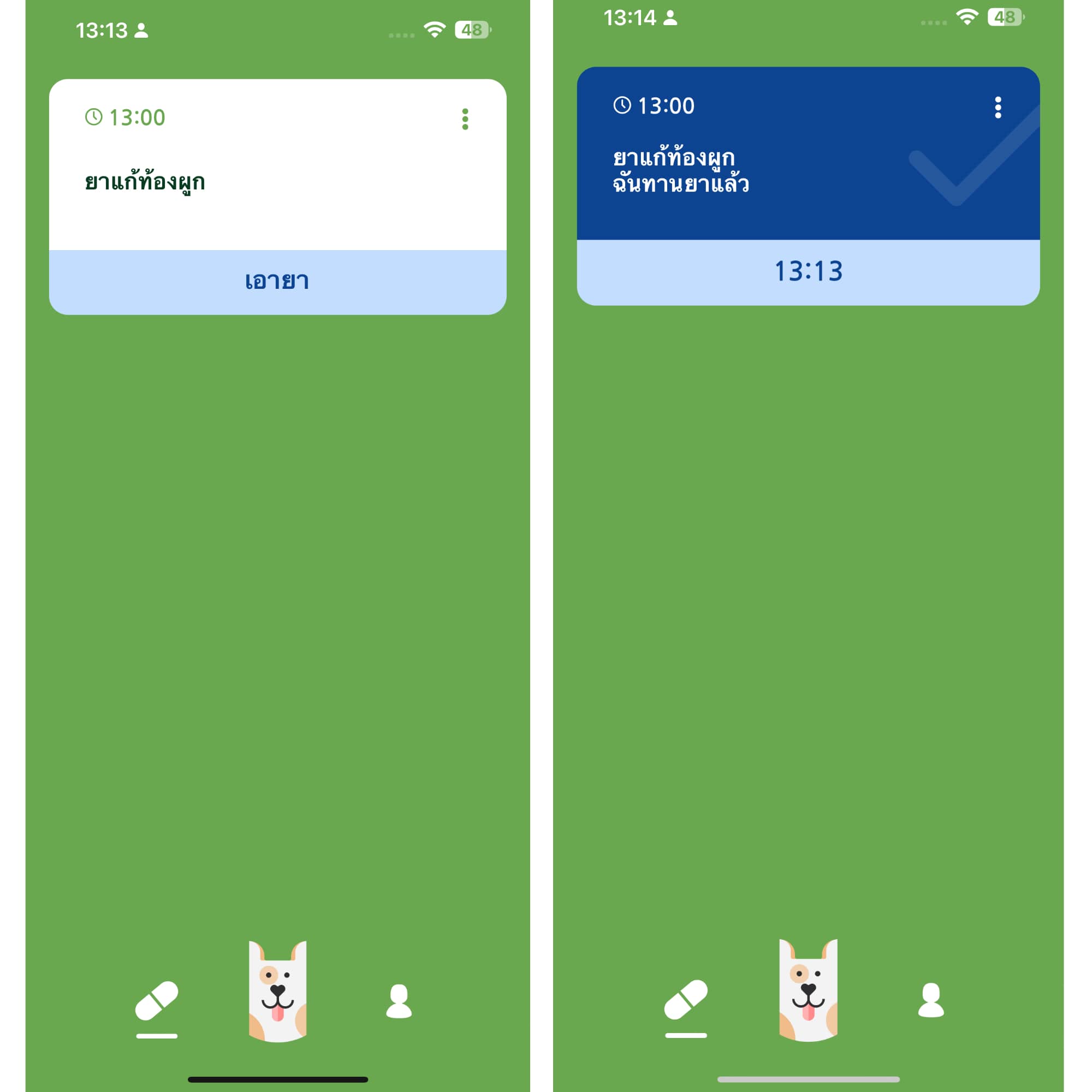 นอกจากนี้ถ้าเรากดไอคอนรูปคน จะแสดงว่าวันนี้เรากินยาอะไรไปบ้างและกินไปเวลาไหน