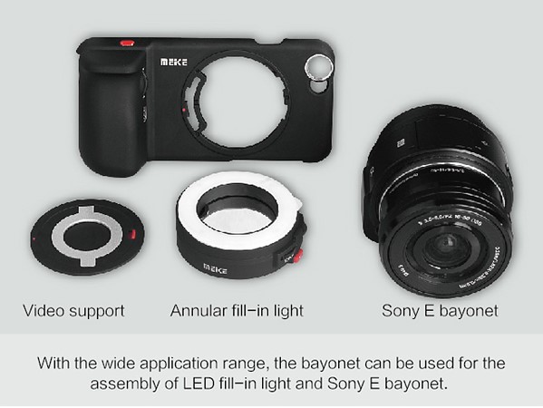 ไม่เพียงแค่เลนส์กว้าง 0.65x, ตาปลา 180° และมาโคร 2.5x เท่านั้น ตัวอุปกรณ์เสริมยังมาพร้อมกับกริปที่จับได้ถนัดมือ รวมถึงอะแดปเตอร์สำหรับติดตั้งไฟแฟลชวงแหวนแบบ LED ช่วยเพิ่มประสิทธิภาพในการถ่ายรูป