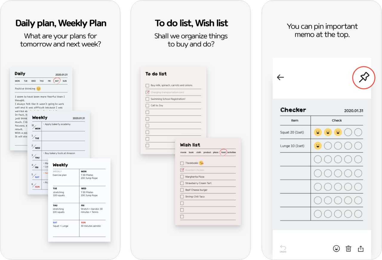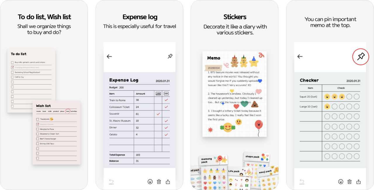 แอปบันทึกรายการสิ่งที่ต้องทำ / บันทึกช่วยจำ ที่มาพร้อมการดีไซน์ในสไตล์เอกสารหรือกระดาษแผ่นเดียวแบบเก๋ๆ ช่วยทำให้กระดาษแผ่นนั้นรู้สึกมีค่ามากขึ้น จากนั้นก็เพียงแปะสติกเกอร์น่ารักๆ ลงไปเท่านั้น เมื่อคุณลงมือทำเสร็จเรียบร้อย