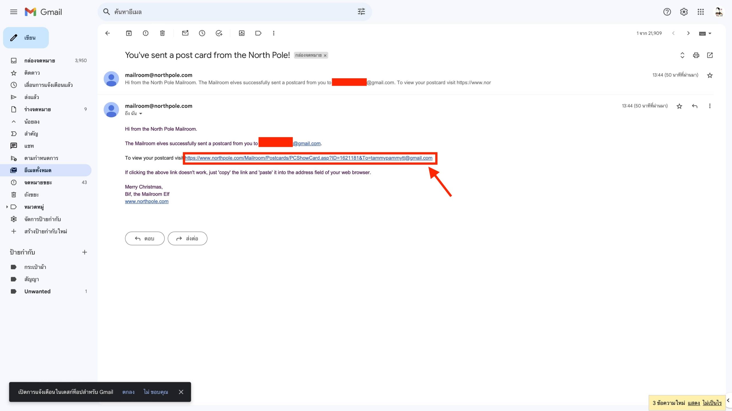 ถ้าเพื่อนเราเข้าไปเช็คเมล ให้กด “ลิงก์” ตามภาพ