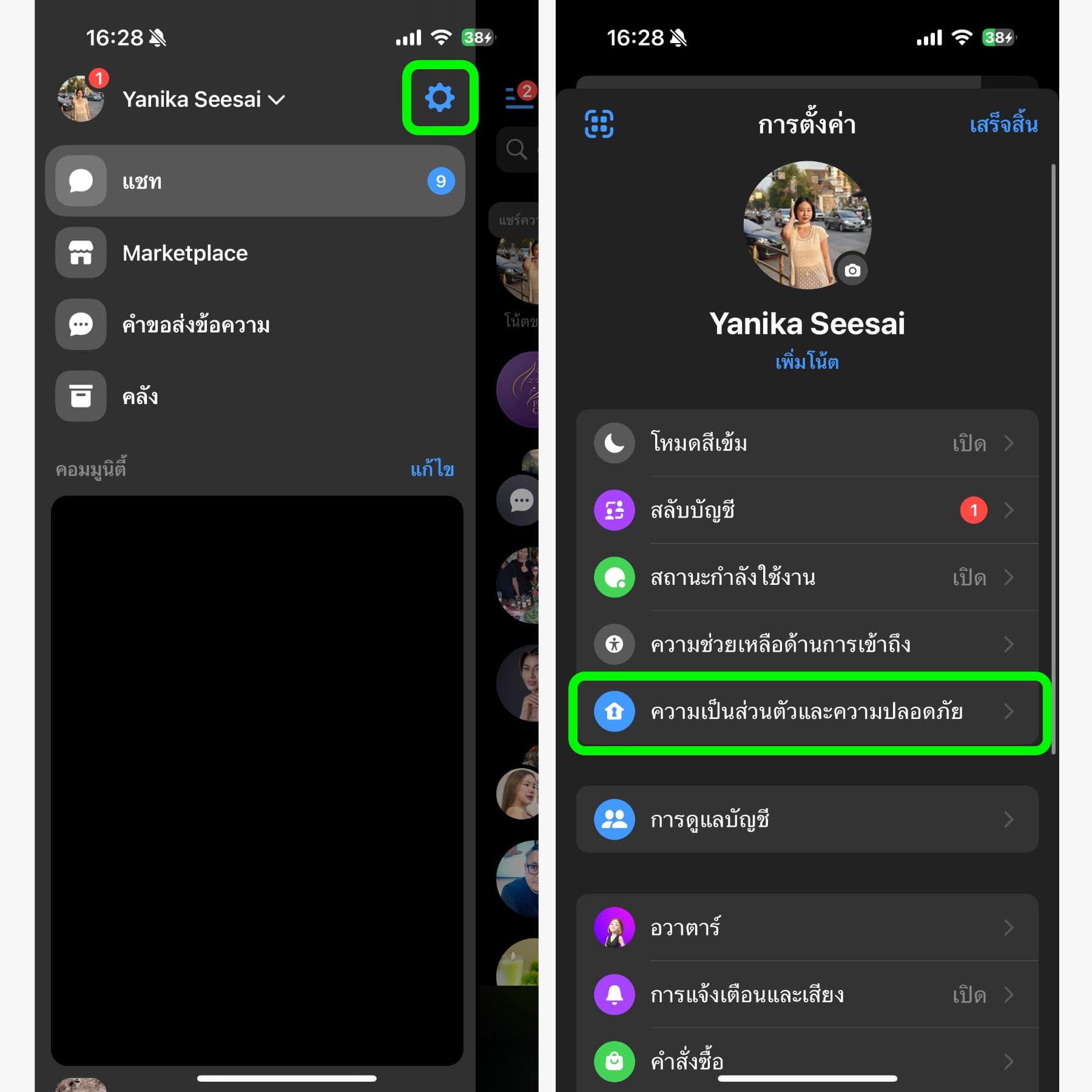 ไปที่แอป Messenger > ไปที่การตั้งค่า > ความเป็นส่วนตัวและความปลอดภัย