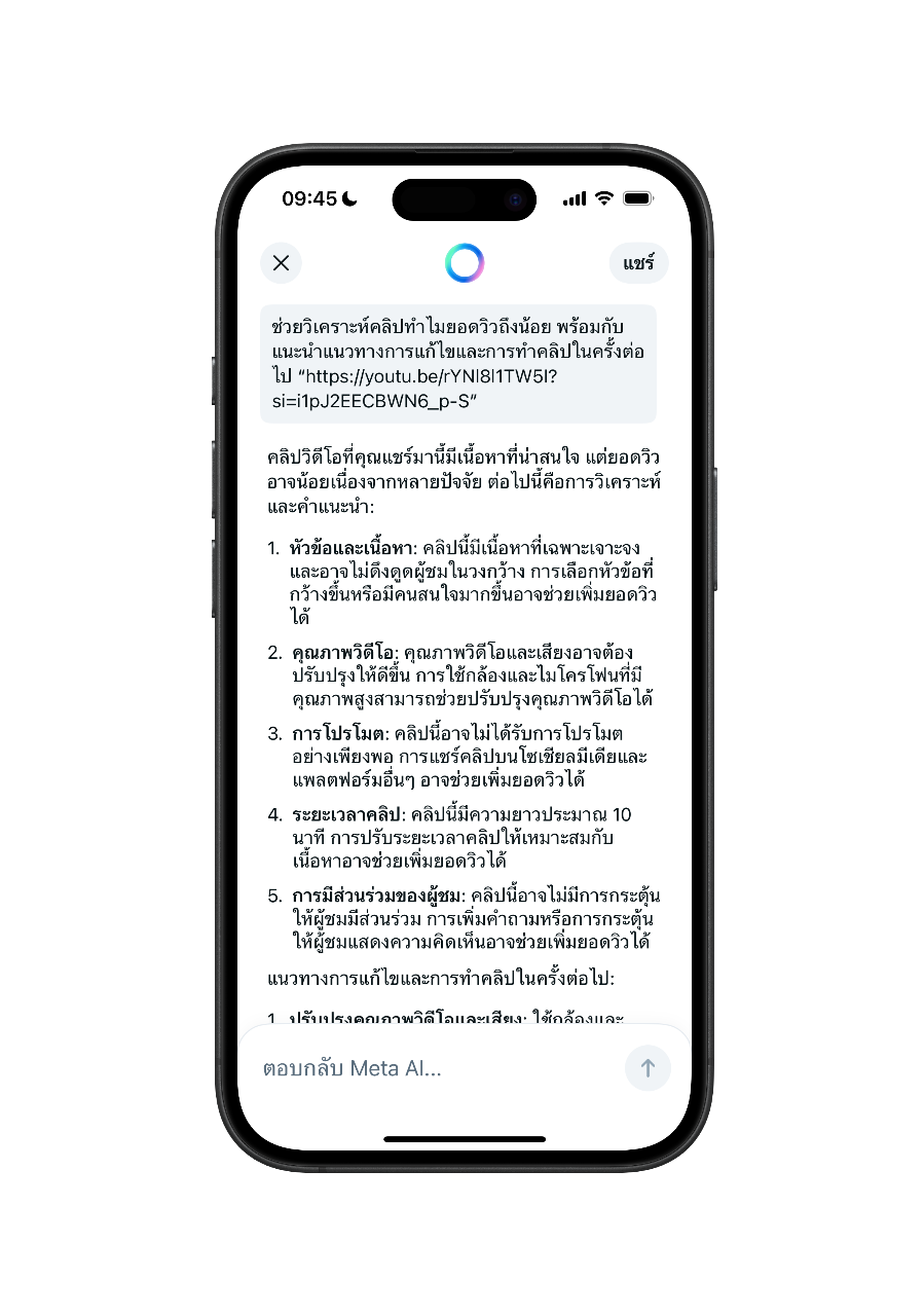 ไอเดียตัน ยอดวิวน้อยให้ Meta AI วิเคราะห์คลิป พร้อมแนะนำแนวทาง