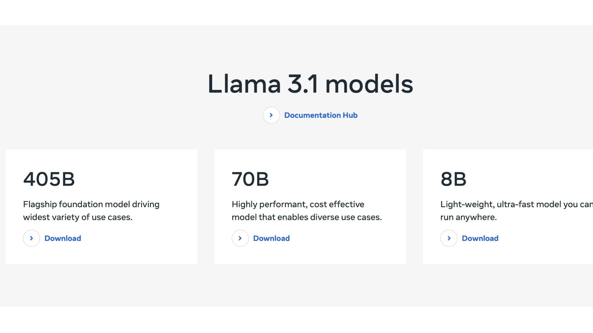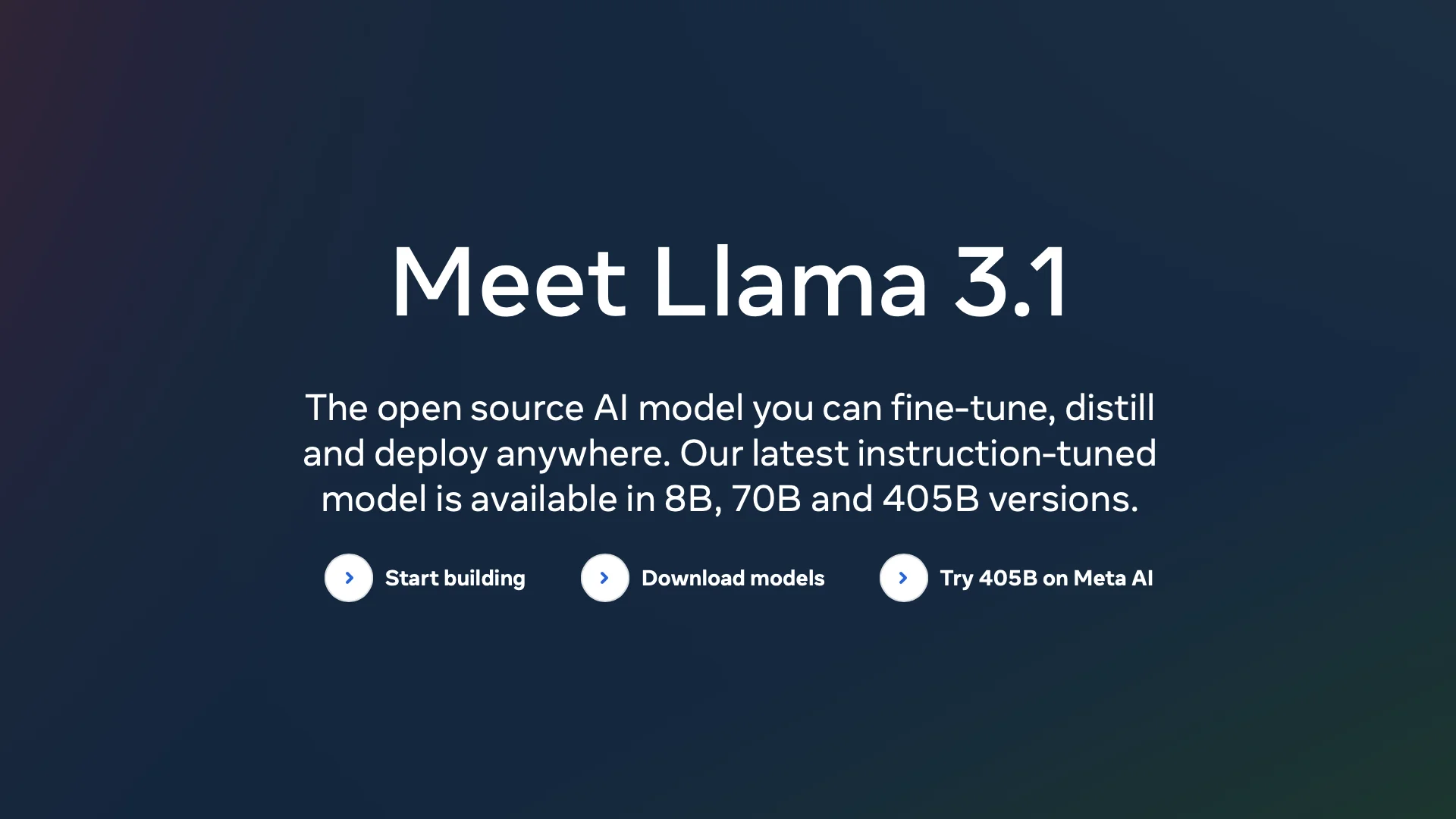 Llama 3.1 มาพร้อมกับโมเดล 8B และ 70B ซึ่งมีการพัฒนาปรับปรุงเพิ่มเติม รวมถึง การเปิดตัว Llama 3 405B ซึ่งเป็นโมเดลแบบโอเพนซอร์สที่ใหญ่ที่สุดและทันสมัยที่สุดในอุตสาหกรรมปัญญาประดิษฐ์ นำเสนอประสิทธิภาพการทำงานที่มีความยืดหยุ่น ใช้งานได้ง่าย และมีความสามารถมากกว่าที่เคย