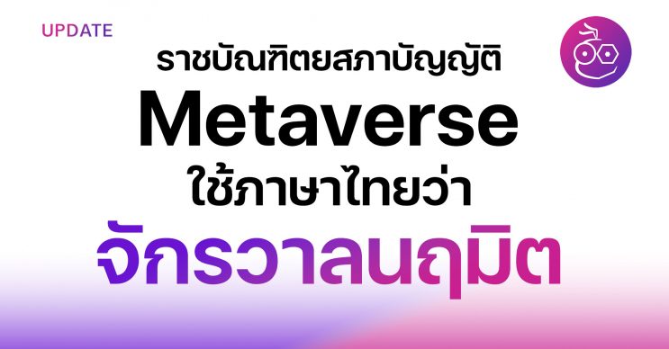 ราชบัณฑิตยสภาบัญญัติคำว่า “จักรวาลนฤมิต” ใช้เรียกแทนคำว่า “Metaverse” เป็นคำที่ได้รับความนิยมจาก Meta ที่ต้องการให้ผู้คนเจอกันในโลกความจริงเสมือน