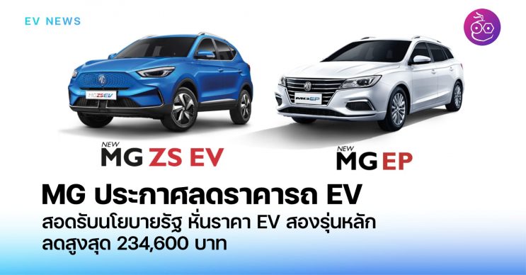 MG ประกาศลดราคารถ EV สองรุ่น ได้แก่ MG ZS EV และ MG EP เพื่อสอดรับนโยบายรัฐบาลไทยที่จะมอบส่วนลดเมื่อซื้อรถยนต์ไฟฟ้า ลดเยอะ คุ้มมาก!