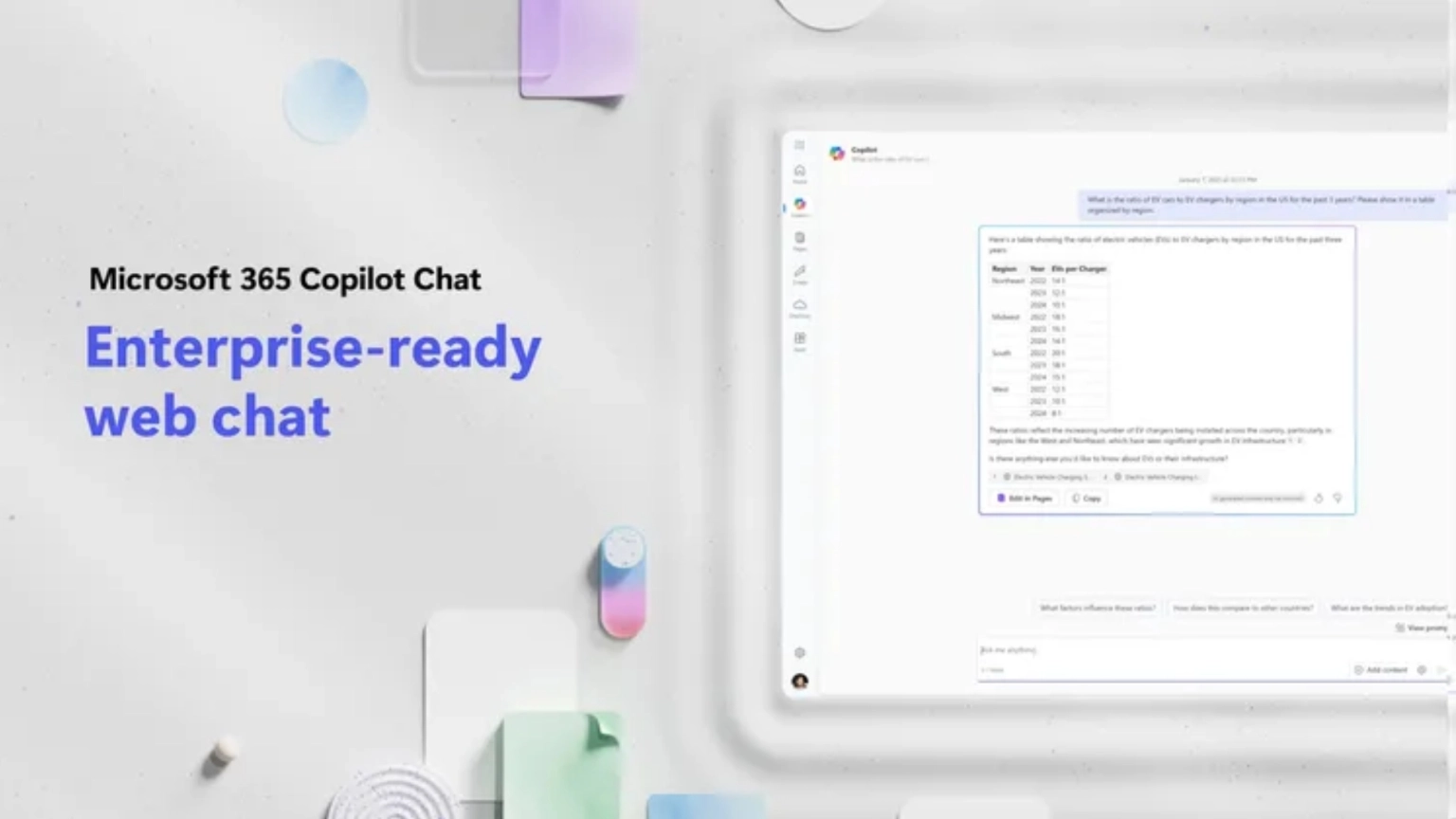- ทำงานร่วมกับแอปต่างๆ ใน Microsoft 365 : Copilot Chat ทำงานร่วมกับแอปพลิเคชันต่างๆ ใน Microsoft 365 ได้เป็นอย่างดี เช่น Word, Excel, PowerPoint, Outlook และ Teams ช่วยให้คุณทำงานได้อย่างต่อเนื่องและมีประสิทธิภาพมากขึ้น