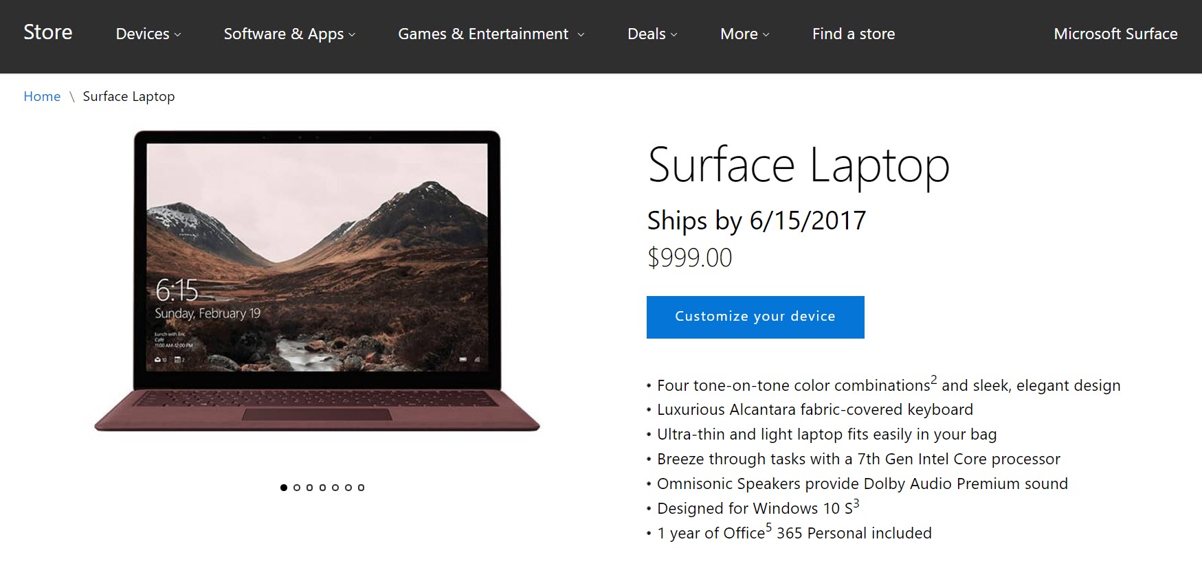 สำหรับ Surface Laptop เปิดให้ Pre-Orders แล้ว โดย Core i5, RAM 4GB, SSD 128GB เปิดขายในราคาเริ่มต้นที่ 999 ดอลล่าร์ และ Core i7, RAM 8GB, SSD 256GB เปิดขายในราคาเริ่มต้นที่ 1,599 ดอลล่าร์ เริ่มจัดส่งวันที่ 15 มิ.ย. นี้