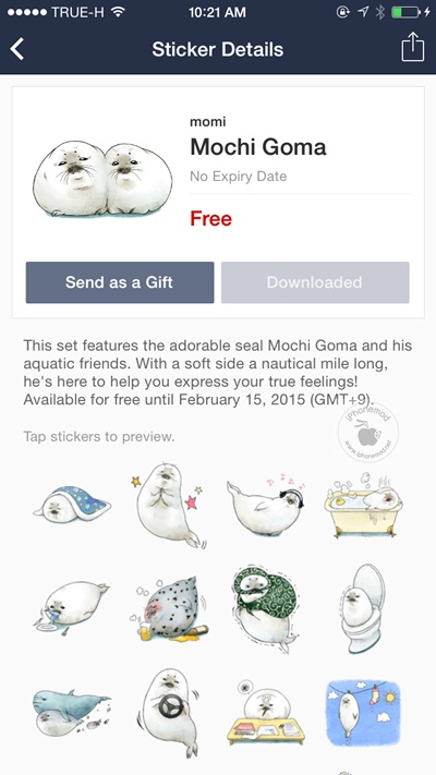 สติกเกอร์ลายนี้เป็นภาพนิ่งมีให้เลือกใช้งานทั้งหมด 40 แบบนะครับ หากต้องการส่งกิ๊ฟให้เพื่อนก็กดที่ Send as a Gift ได้เลย