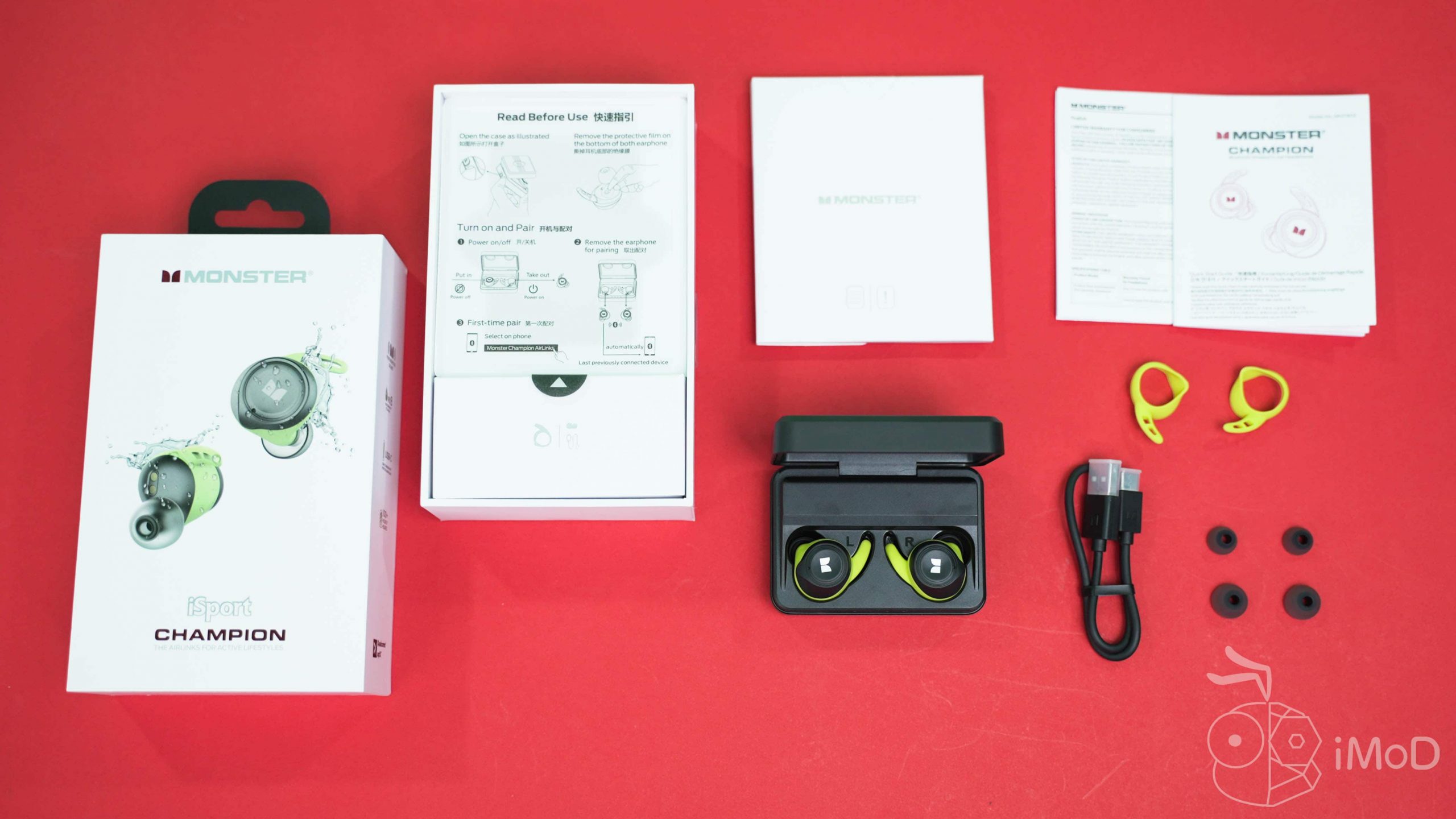 หูฟัง MONSTER รุ่น iSport Champion Airlinks เป็นหูฟังแบบ In-ear ตัวหูฟังออกแบบมาให้ดูเท่ใช้สีดำตัดกับ Ear-hook สีเขียวมะนาว และมีไฟ LED สีน้ำเงินอยู่บนหูฟัง เมื่อใส่หูฟังสามารถหมุนให้พอดีกับหู ให้ Ear-hook เกี่ยวหู และยังมีจุกยาง 3 ขนาด ที่เราสามารถเลือกให้พอดีกับหู ทำให้เรามั่นใจได้เลยว่าหูฟังจะไม่หลุดจากหูได้ง่าย