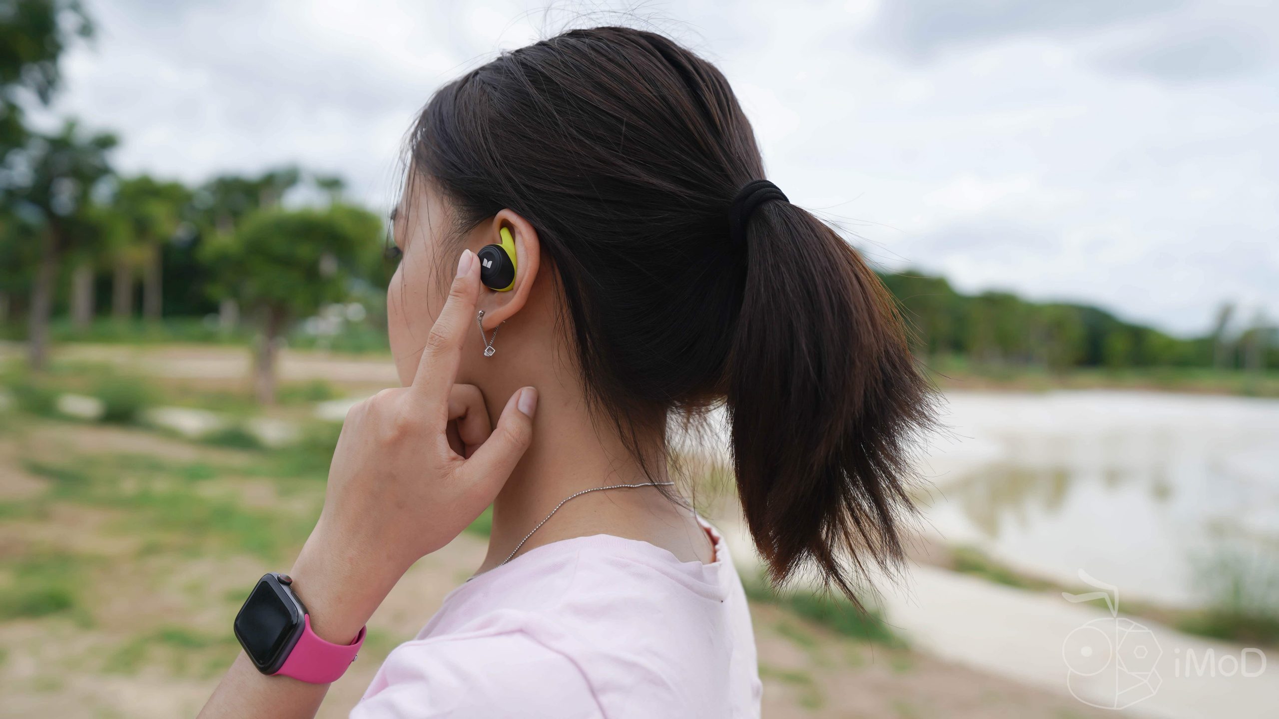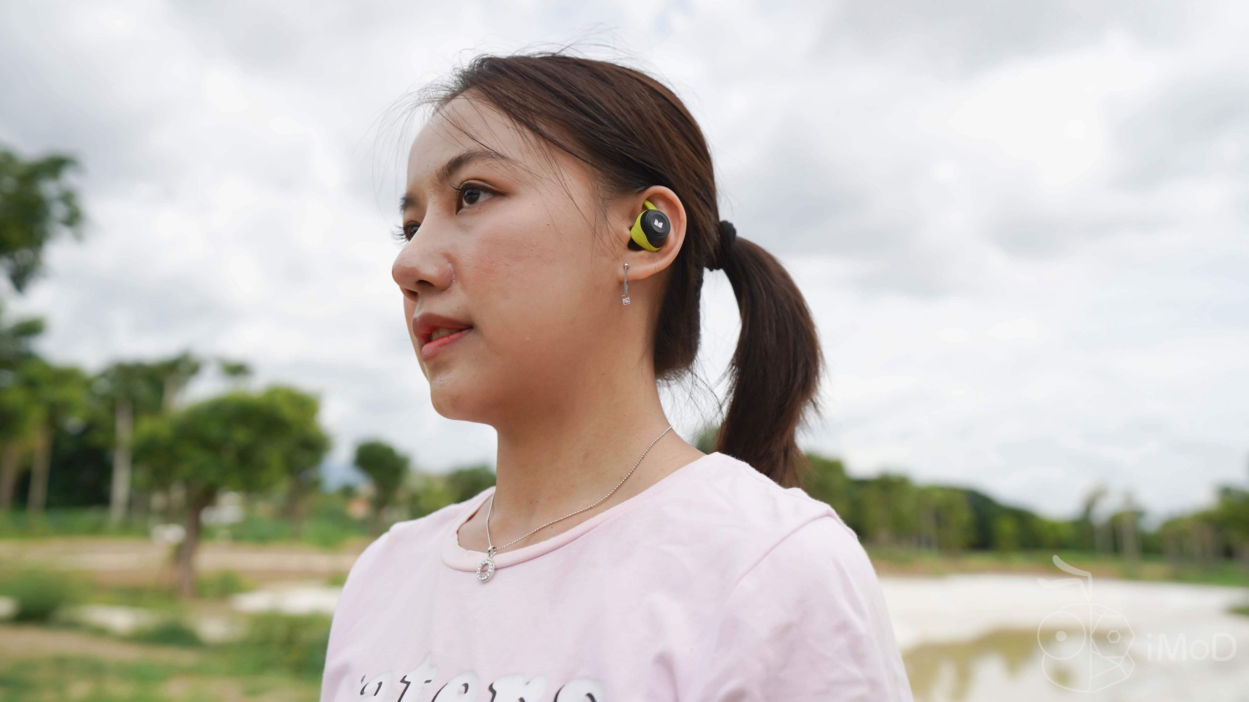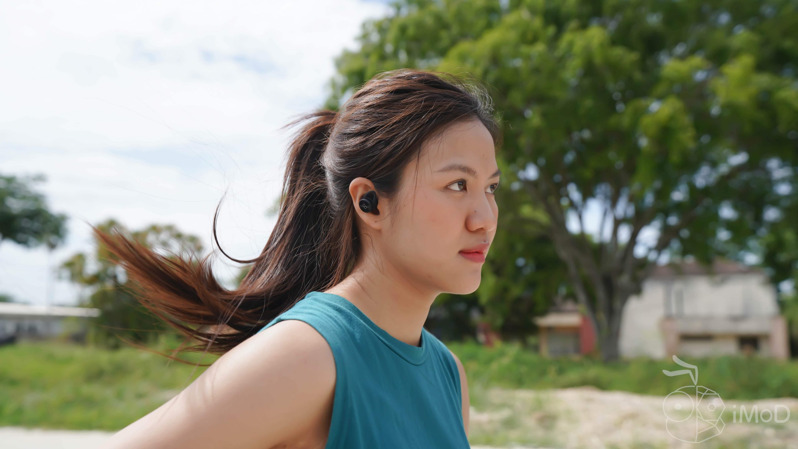 เมื่อทดลองนำไปออกกำลังกาย 30 นาที พบว่าหูฟังใส่สบาย ไม่รัดหูเกินไป วิ่งไปนานๆ มีเหงื่อ ก็ไม่ทำให้หูฟังหลุดจากหู แต่อาจจะมีเสียงภายนอกเข้ามาเล็กน้อย