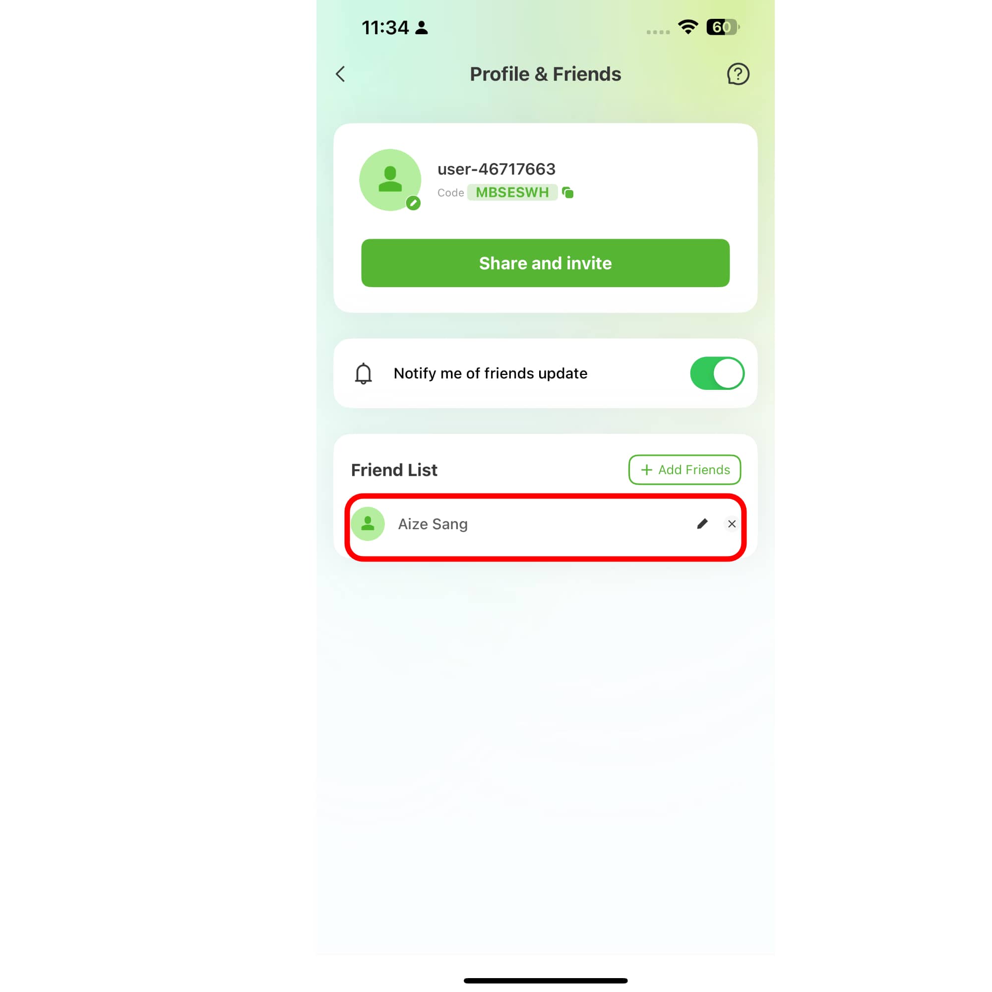 Profile&Friends > Share and invite แล้วแชร์ลิงก์ไปให้เพื่อนหรือแฟนของเราเพื่อใช้งานวิตเจ็ตนี้ร่วมกันได้เลย