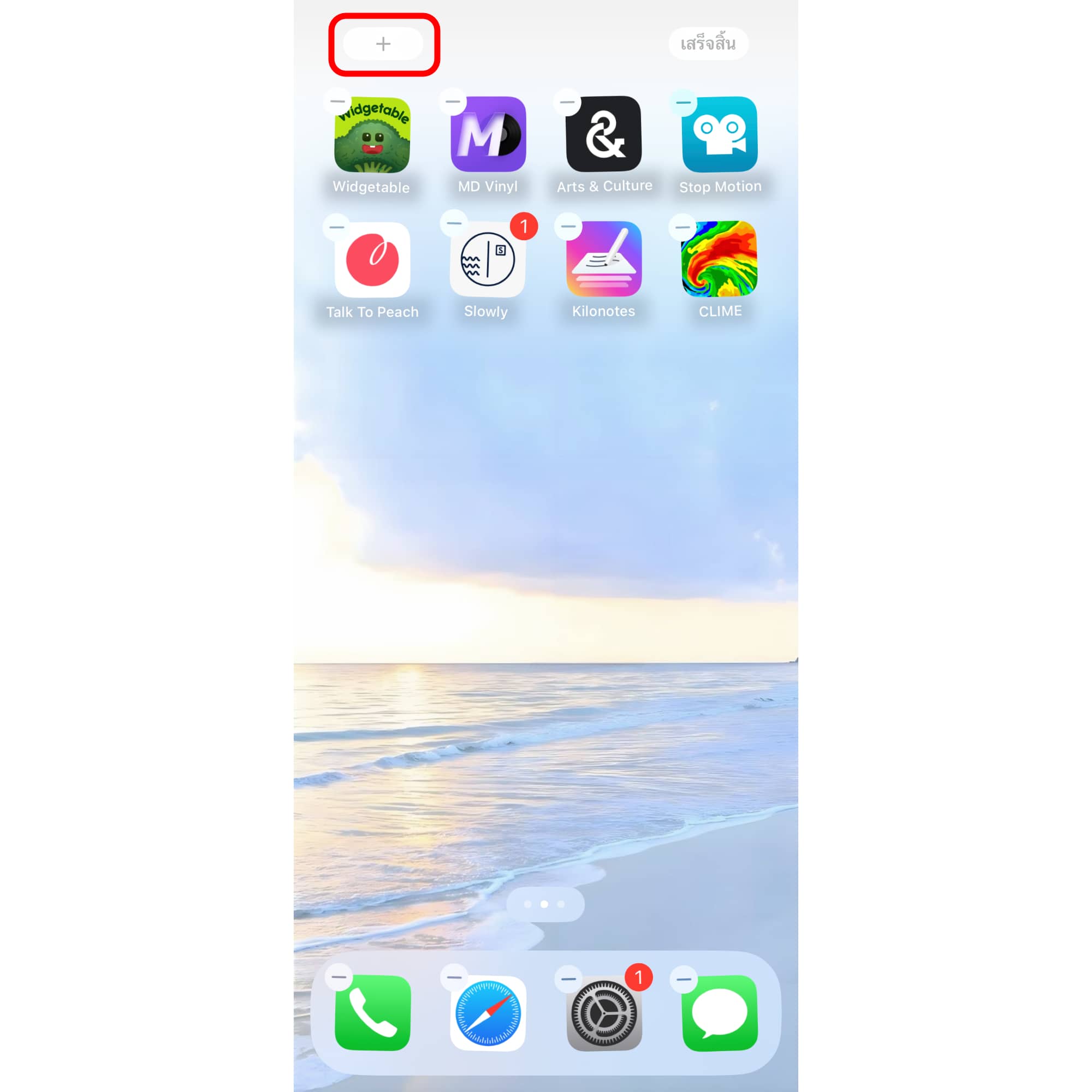 มาที่หน้าจอหลัก กด “ค้าง” ที่หน้าจอ จากนั้นกด “+”