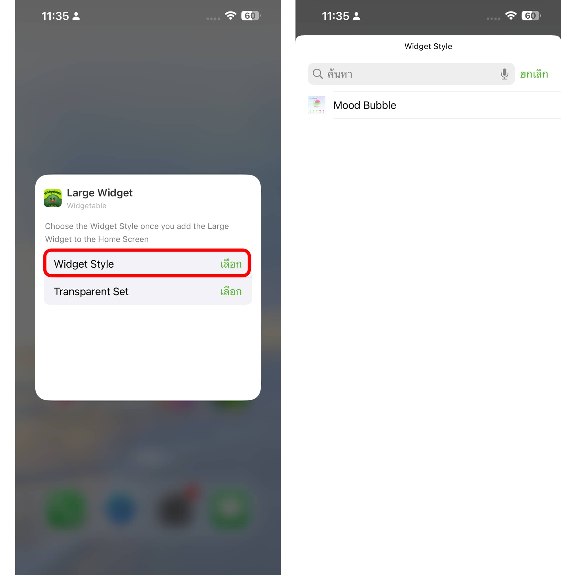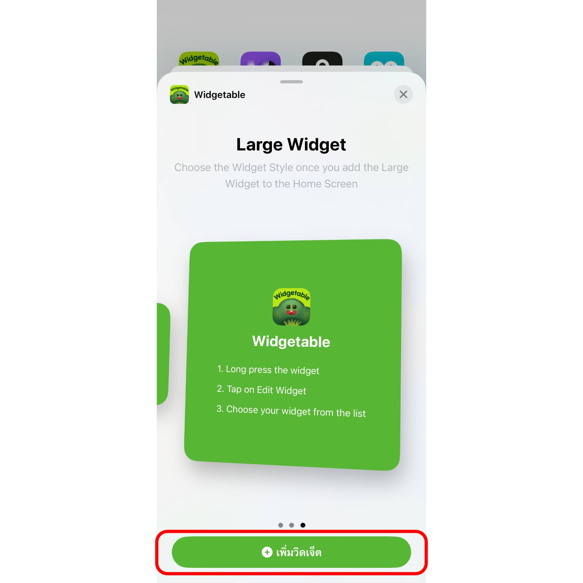 เลือก Large Widget > เพิ่มวิตเจ็ต