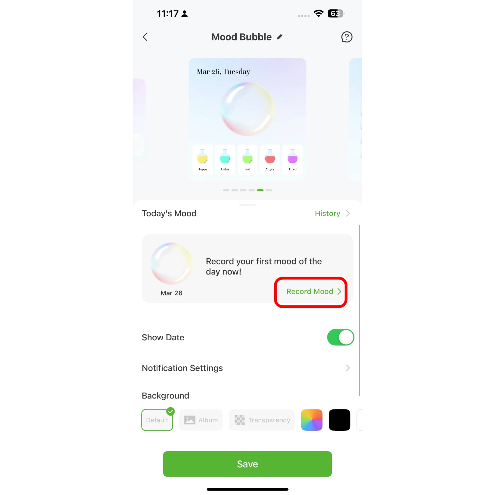 จากนั้นให้กด “Record Mood” เพื่อเริ่มบันทึกอารมณ์ประจำวันได้เลย