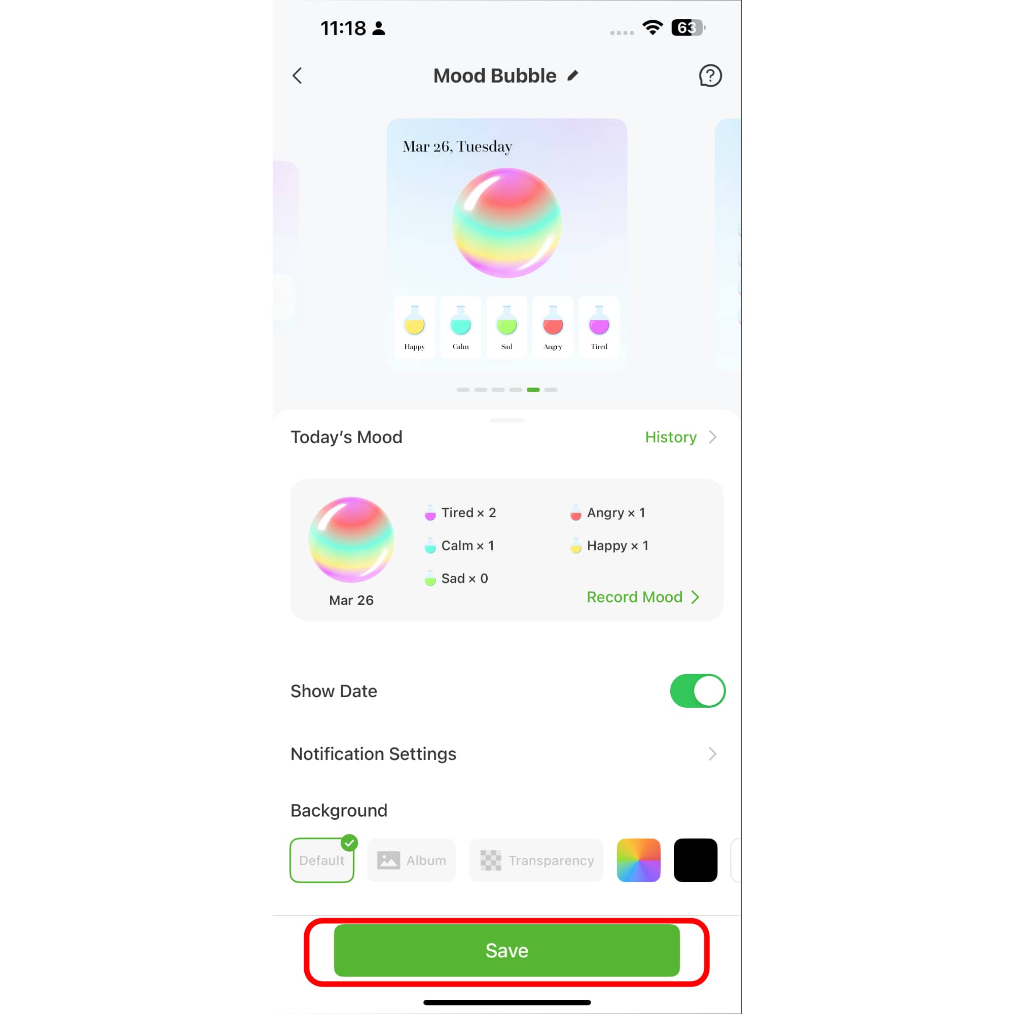 แค่นี้เราก็จะได้ Mood Bubble มาตั้งบนหน้าจอหลักแล้ว สีน่ารักสวยสุด ๆ