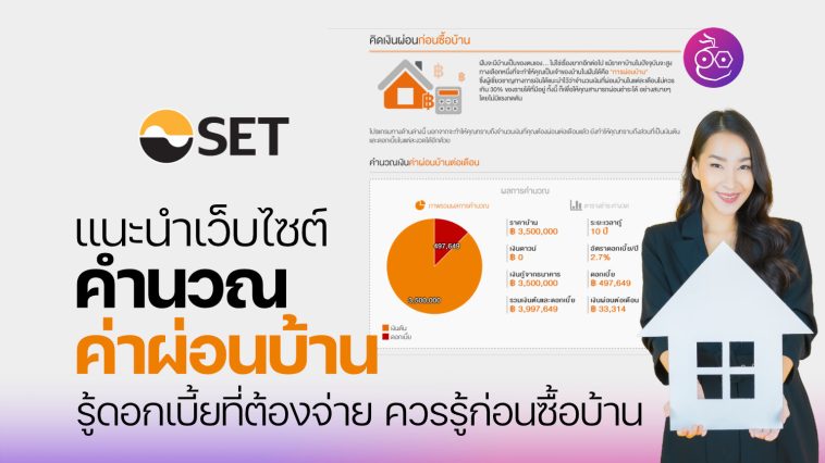 โดยเว็บนี้เป็นของตลาดหลักทรัพย์แห่งประเทศไทย (SET) จะช่วยให้คุณประมาณการยอดผ่อนชำระต่อเดือนได้ง่าย ๆ เพียงกรอกข้อมูลให้ครบถ้วน