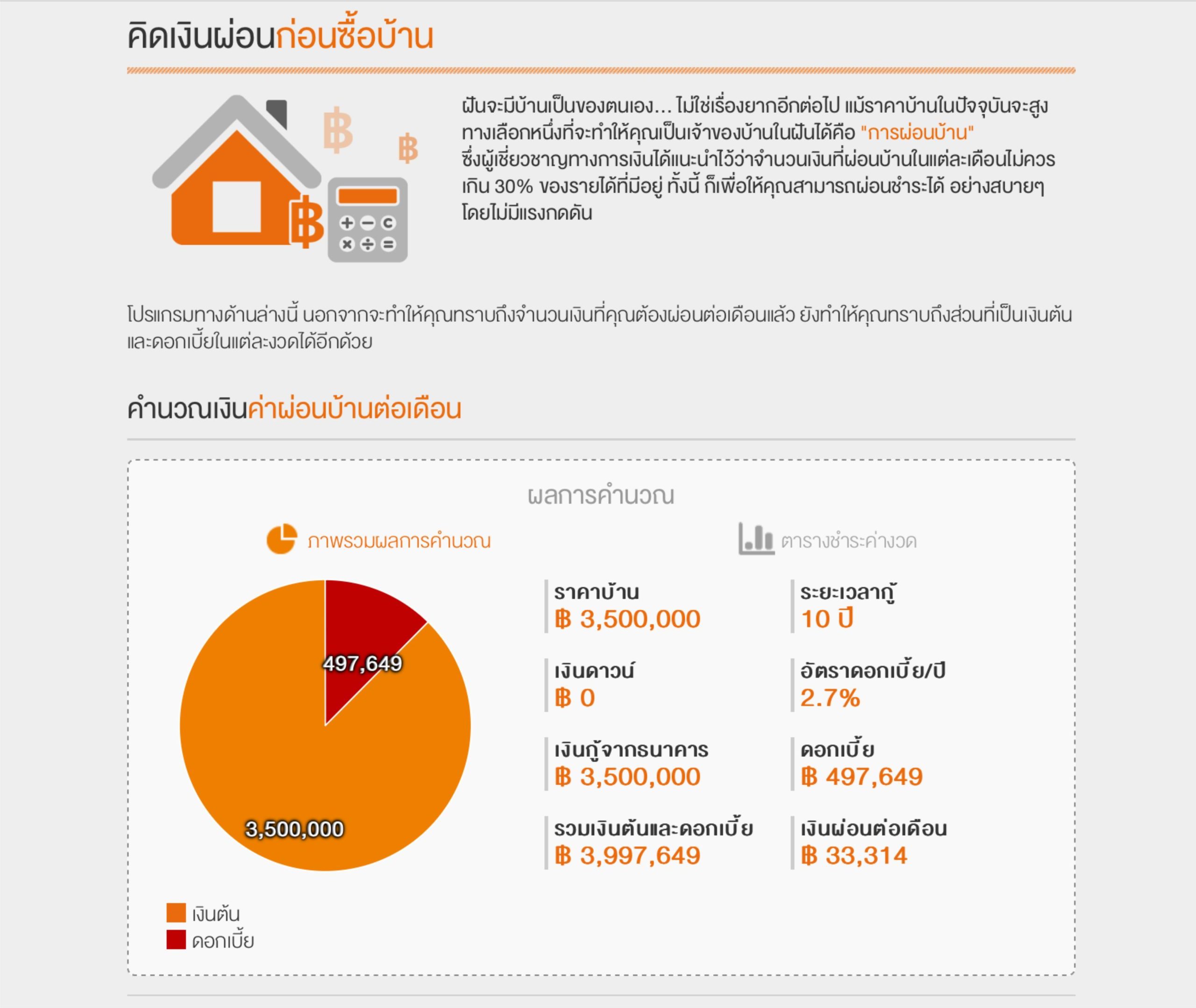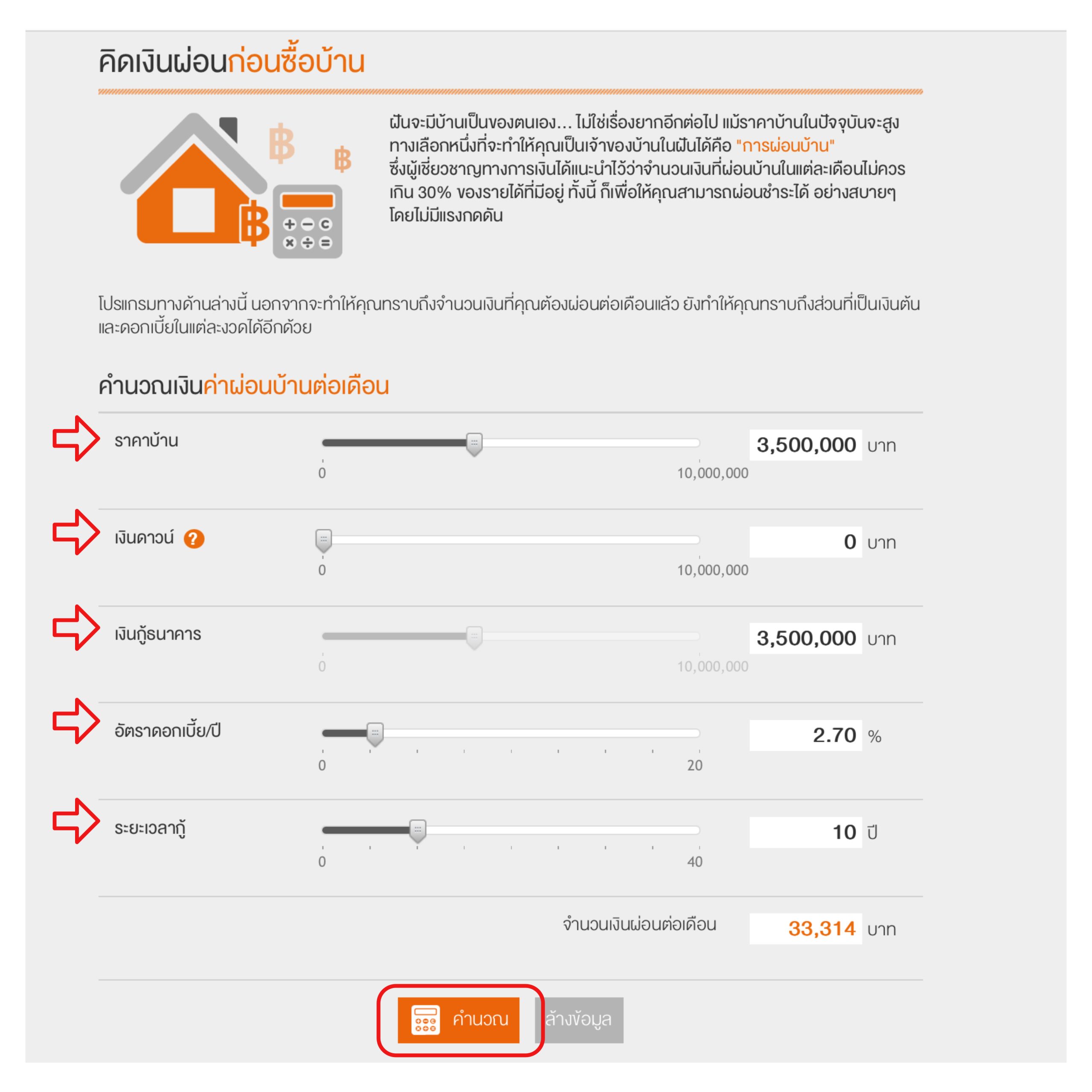 การใช้งานเว็บคำนวณค่าผ่อนบ้าน