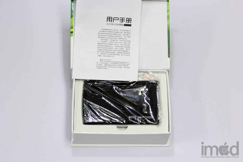 เปิดกล่องมา ไม่ได้อลังการอะไรมากนัก ดูเรียบๆดีครับ เปิดมาจะมีคู่มือวางอยู่ แต่เป็นภาษาจีน อ่านไม่ออกครับ (= =”) แต่ตามประสาแบตพกพา ไม่ยุ่งยากครับ เรียนรู้จากปุ่ม 2 ปุ่มก็ใช้ได้สนุกแล้วครับ 😀