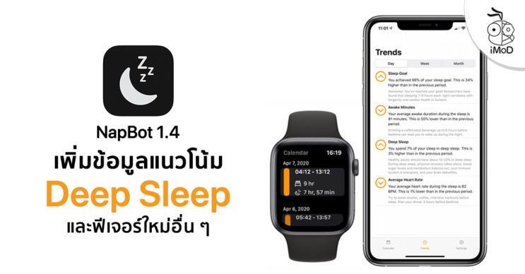 NapBot แอปติดตามการนอนที่ทำงานร่วมกับ Apple Watch ปล่อยอัปเดตใหม่เพิ่มประสิทธิภาพและปรับตัวเลือกการวิเคราะห์แนวโน้ม Deep Sleep ใหม่