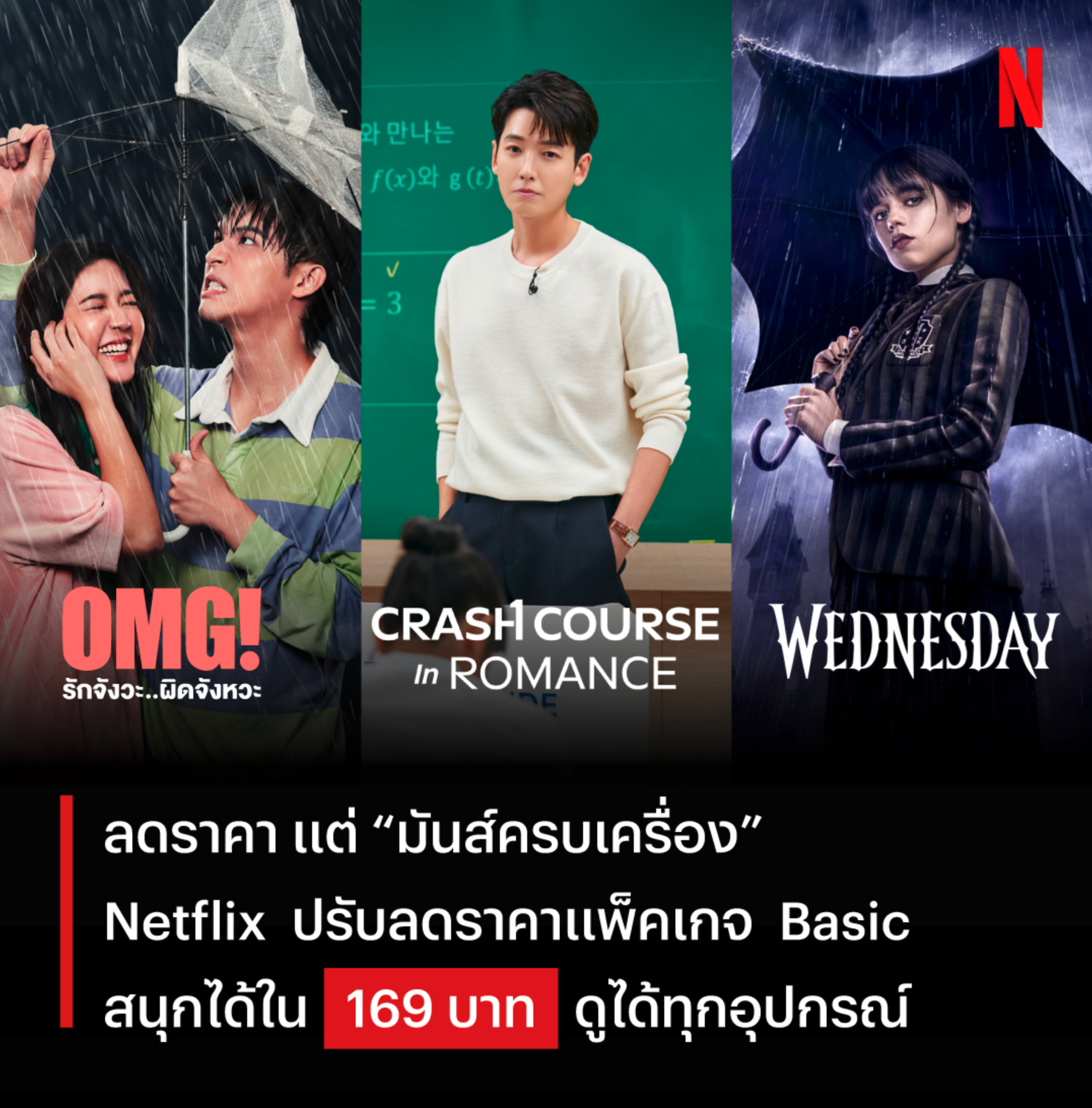 Netflix ประกาศปรับลดราคาแพ็คเกจใหม่! แพ็คเกจพื้นฐาน (Basic) เหลือ 169 บาทต่อเดือน จากเดิม 279 บาทต่อเดือน