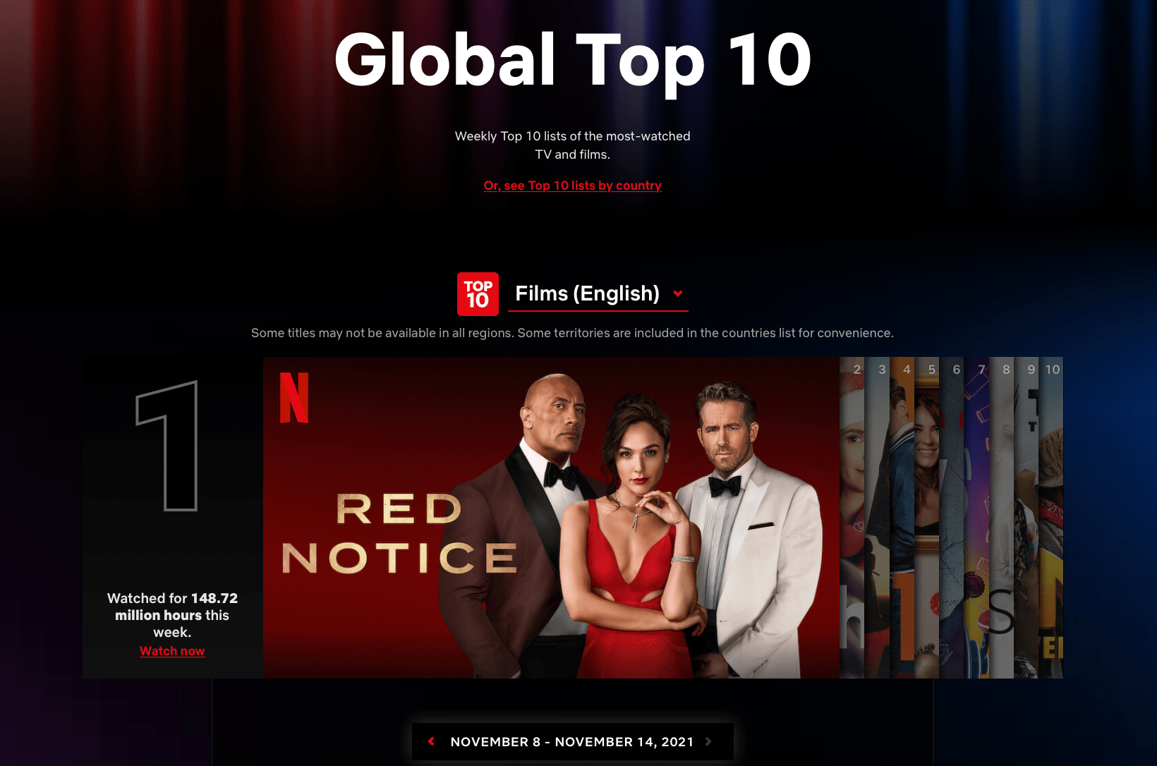 เมื่อเข้าไปดู เราจะเห็นได้ว่า 10 อันดับแรกของ Netflix ไม่เพียงแต่มีเนื้อหาต้นฉบับจาก Netflix เองเท่านั้น แต่ยังมีภาพยนตร์และรายการที่ได้รับอนุญาตจากค่ายอื่น ๆ ด้วย จากการเรียกร้องรายได้เมื่อเดือนที่แล้ว Netflix เปิดเผยว่าในขณะนี้ทางษริษัทกำลังจะพิจารณาจำนวนชั่วโมงที่ที่เข้าชมทั้งหมดแทนการวัดจากการเข้าชมเพียง 2 นาทีเพื่อกำหนดอันดับ 10 อันดับแรก