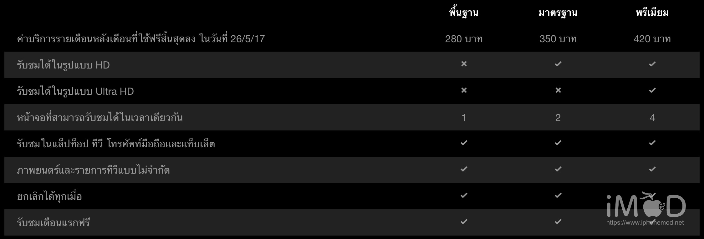 ผู้ที่สนใจสมัครใช้งาน Netflix ได้ผ่านทางแอปพลิเคชัน Netflix หรือผ่านหน้าเว็บ https://www.netflix.com/ ใช้งานฟรี 30 วัน จากนั้นเลือกสมัครสมาชิกเพื่อรับชมรายเดือนได้มีให้เลือก 3 ราคาคือ 280, 350 และ 420 บาท ส่วนความแตกต่างนั้นชมตามตารางด้านล่างได้เลยครับ