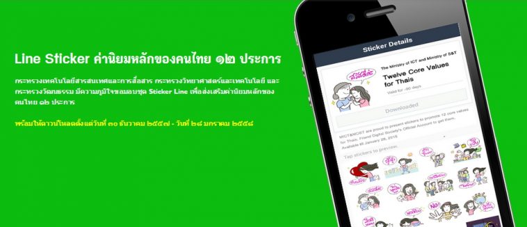 1. Twelve Core Values for Thails ลายนี้ที่กำลังเป็นข่าว ไม่สนครับมีให้โหลดก็ใช้ไปแล้วพบว่านักรักพร้อมความหมายดีด้วย ส่วนตัวชอบครับ ชุดนี้เป็นสติกเกอร์ที่เคลื่อนไหวได้และมีให้เลือกใช้ 16 แบบใช้งานได้ 90 วัน หมดเขตดาวน์โหลด 28 มค. 2558