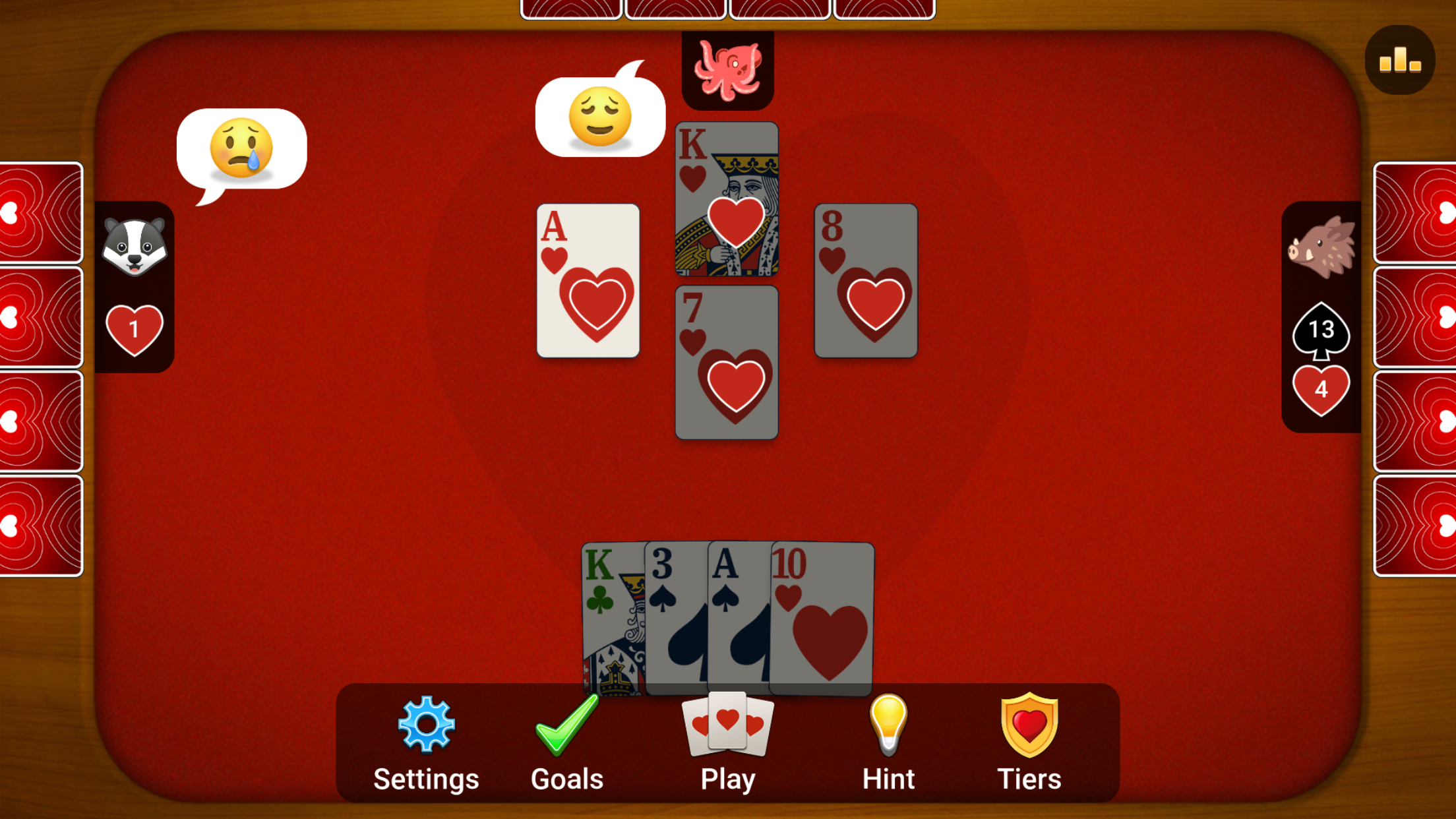 เป็นอีกหนึ่งเกมไพ่สุดคลาสสิก และปัญญาประดิษฐ์ของ MobilityWare จะทำให้ผู้เล่นทุกคนได้เปรียบเหนือใคร ตัวเกมจะสอนให้ผู้เล่นรู้จักกับการแข่งกับ AI ที่จะปรับแต่งสไตล์การเล่นของตัวเองไปตามแนวทางการเล่นของตัวผู้เล่นเอง แต่ถึงอีกฝั่งจะเป็นหุ่นยนต์อันชาญฉลาดแต่การแข่งขันครั้งนี้ก็ยุติธรรมอยู่ดี ถึงแม้ว่าบางทีจะรู้สึกได้ถึงความท้าทาย แต่ Hearts เองก็มีฟีเจอร์คำใบ้ AI ให้ผู้เล่นได้ใช้และฉลาดกว่าใครเหมือนกัน