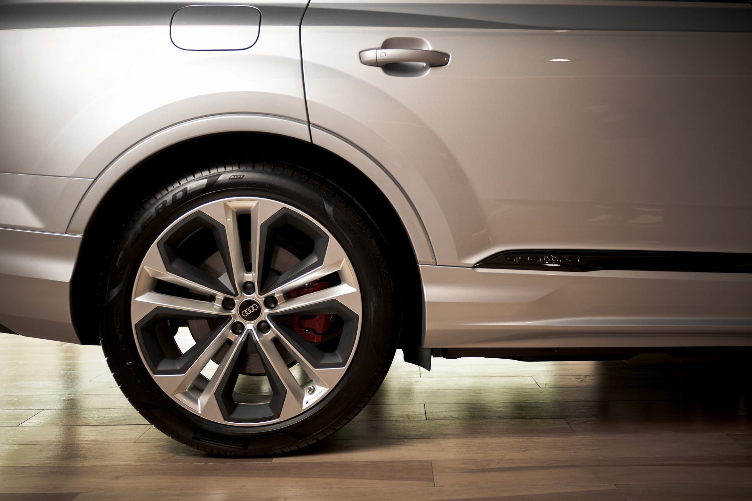 Audi Q7 60 TFSI e quattro S line Black Edition และ Audi Q8 60 TFSI e quattro S line Black Edition ได้รับการออกแบบให้ลุคสปอร์ต ภายนอกตกแต่งด้วยชุดแต่ง S line และอัพเกรดการตกแต่งเป็นแบบ Black Edition โดยเปลี่ยนคิ้วโครเมียมรอบคันเป็นสีดำและฝาครอบกระจกมองข้างสีดำดูดุดัน ล้ออัลลอยลายใหม่ ขนาด 21 นิ้ว พร้อมคาลิปเปอร์เบรกสีแดงทั้งหน้า-หลัง
