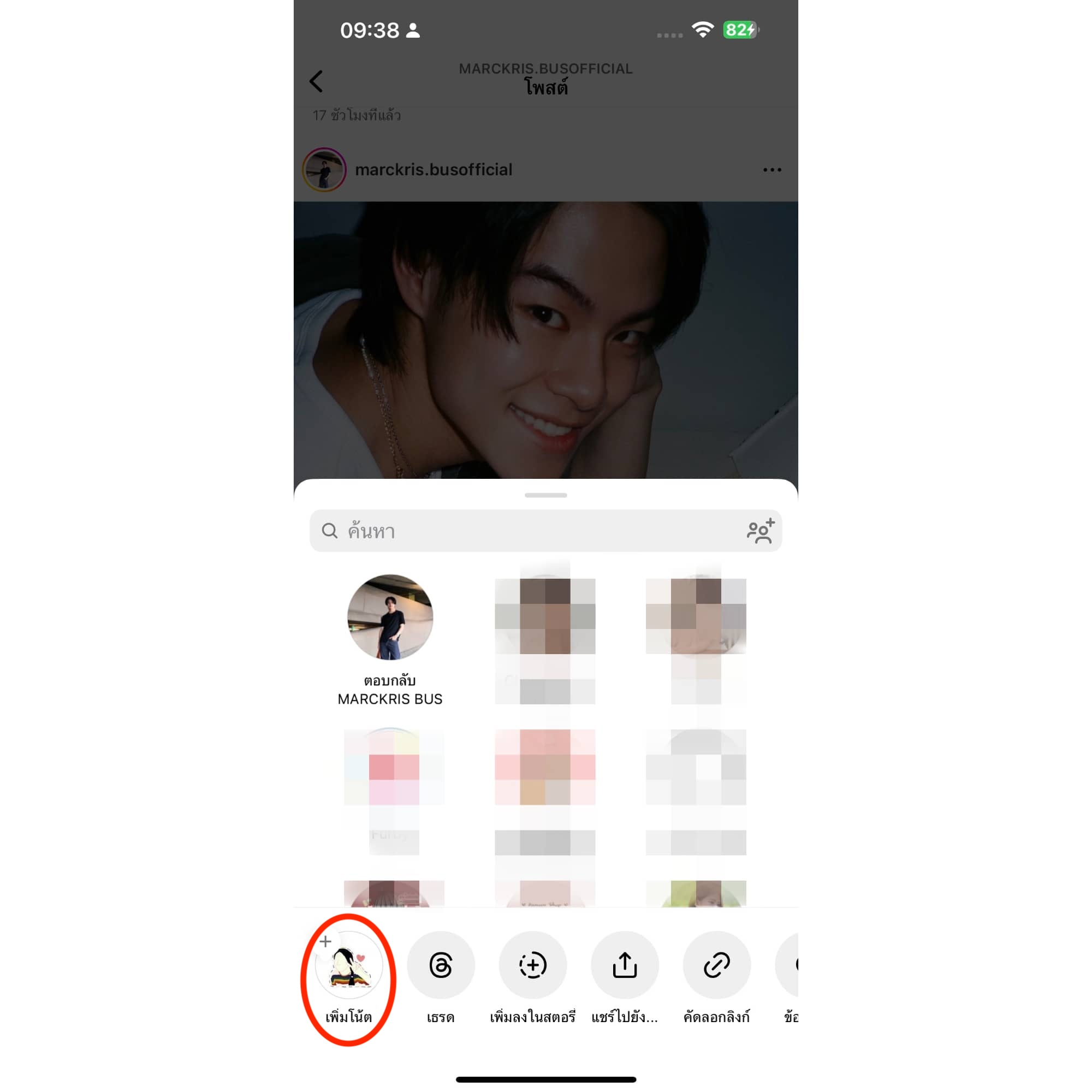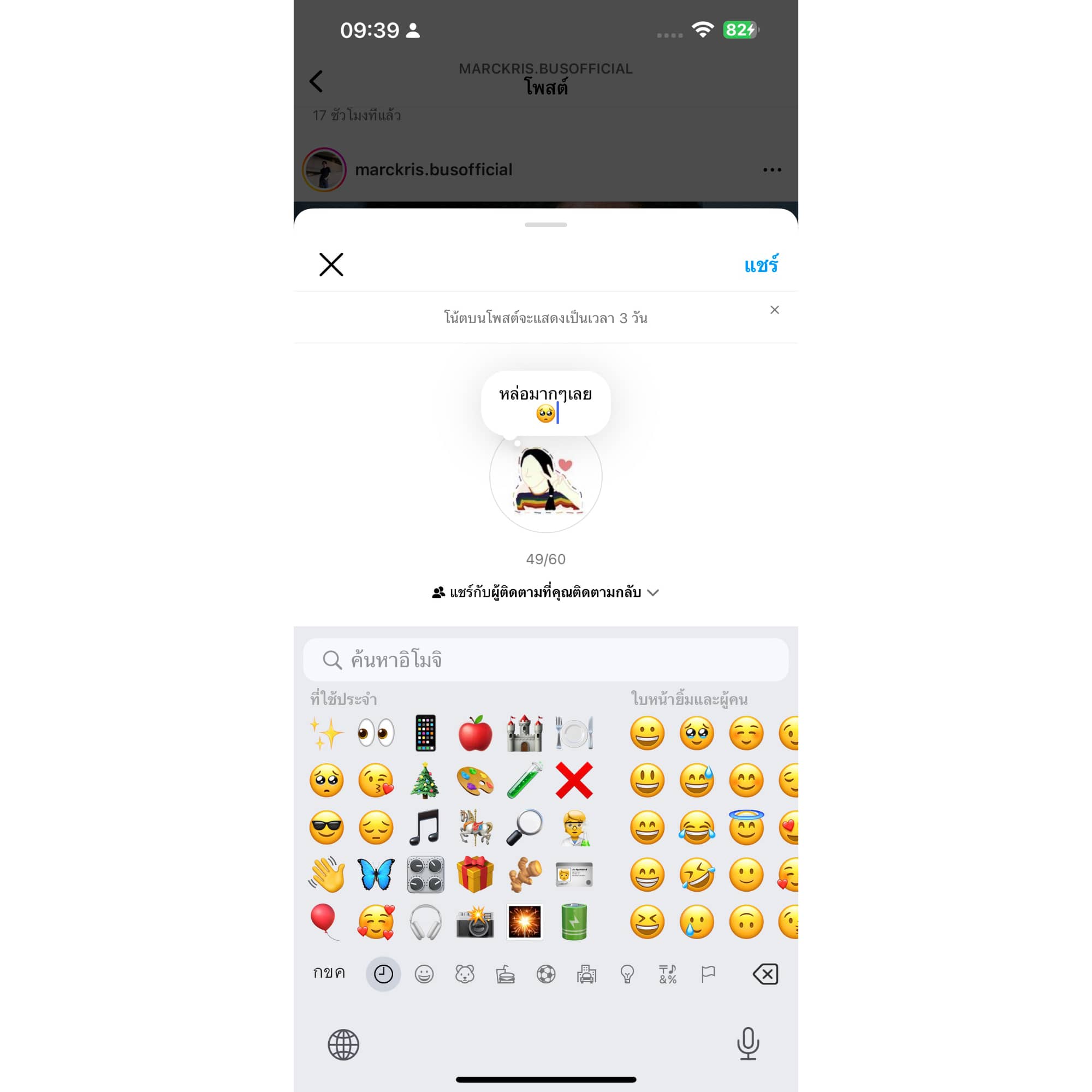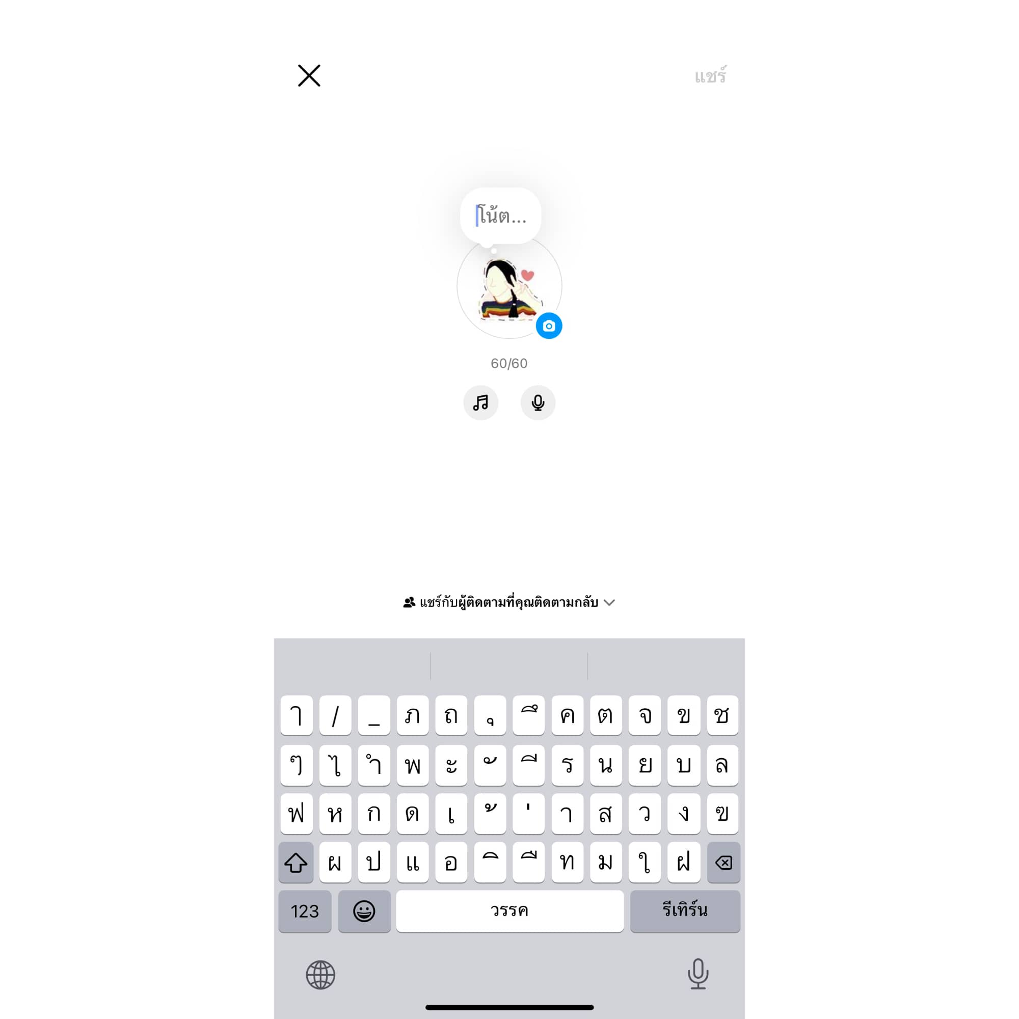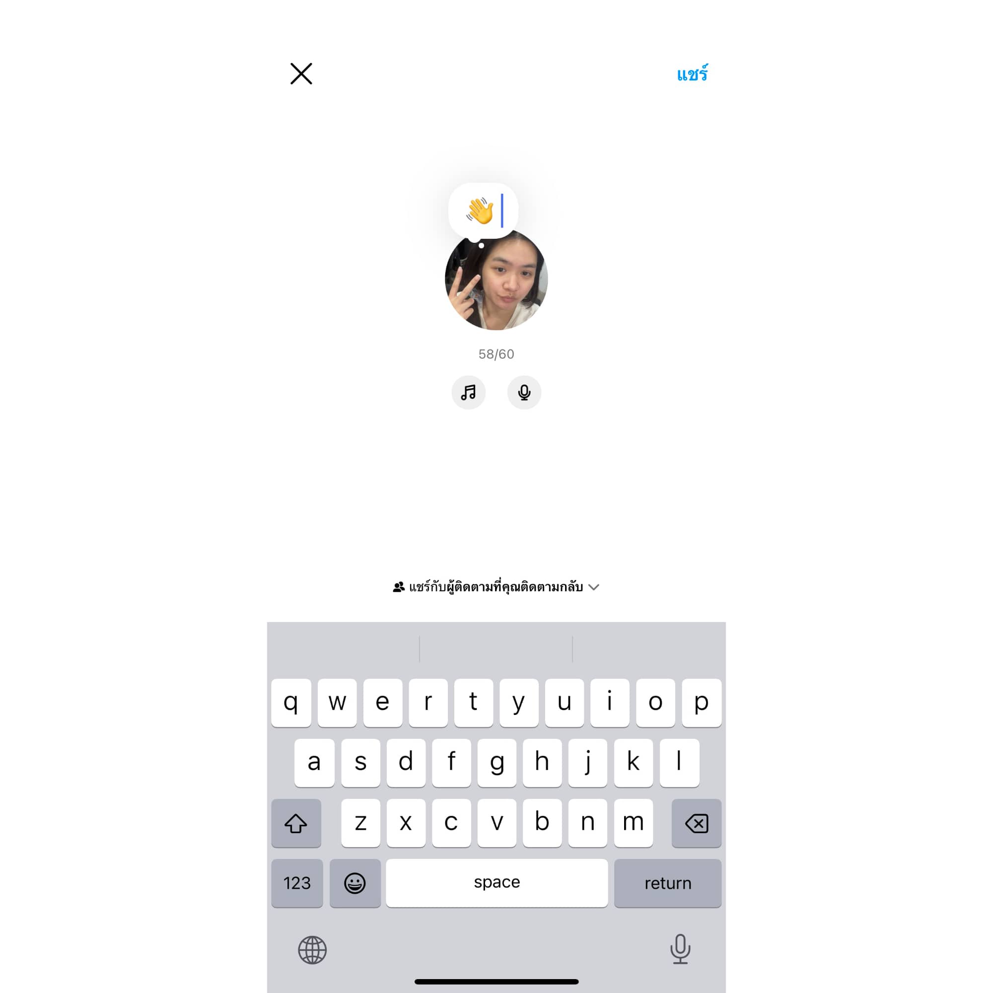 พอถ่ายเสร็จเราสามารถตั้งข้อความโน้ตได้ตามปกติเลย พอเสร็จแล้ว “กดแชร์ ” ได้เลย