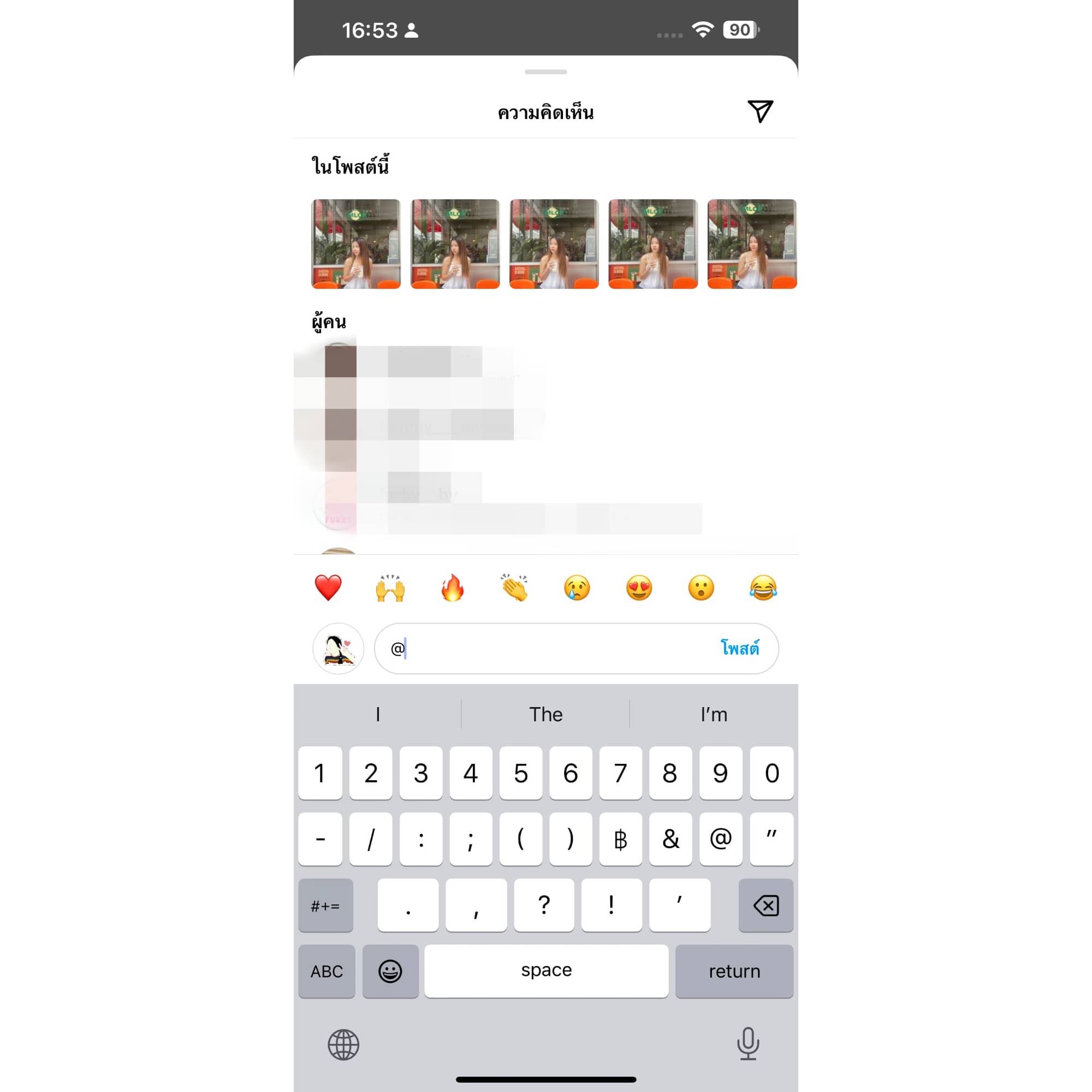 “กดเมนชั่นหรือ @ ” แล้วเลือกรูปที่ต้องการคอมเม้นได้เลย