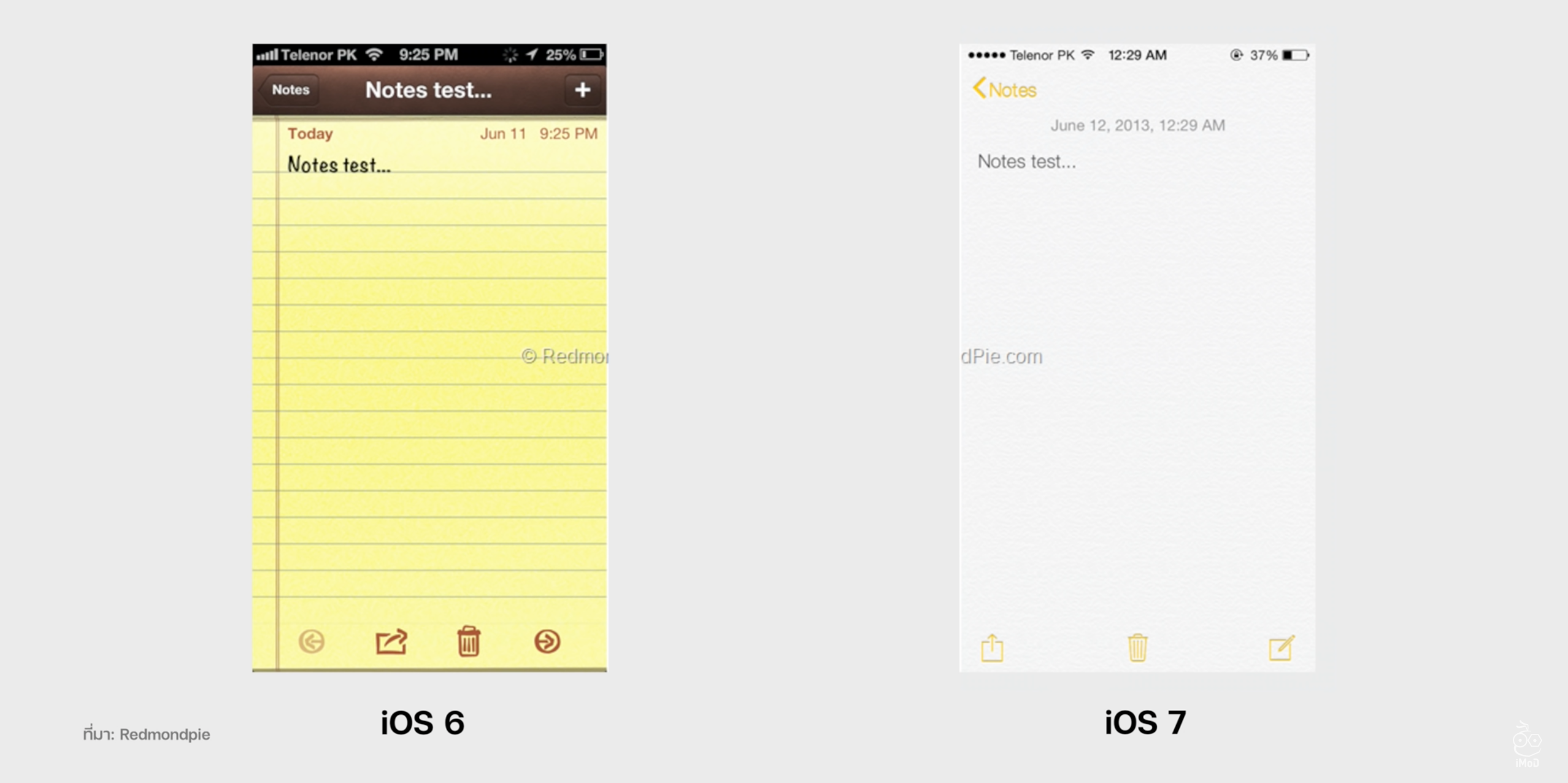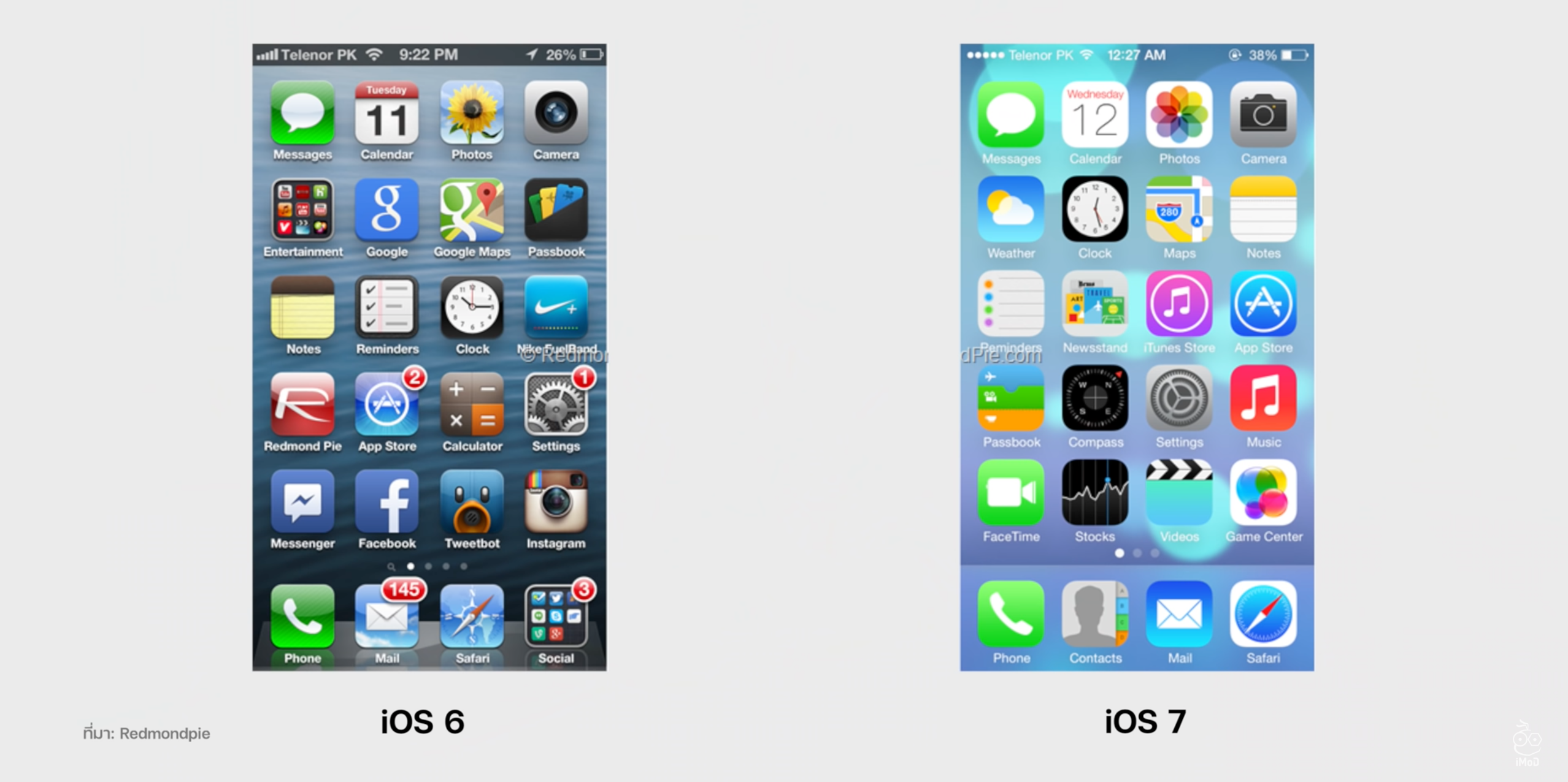 - Mark Gurman จาก Bloomberg กล่าวว่า เราอาจจะยังไม่ได้เห็นการเปลี่ยนแปลง UI หน้าตาโดยรวมของ iOS จากการอัปเดต iOS16 ในครั้งนี้ ซึ่งเมื่อเทียบกับการปรับเปลี่ยนหน้าตาของ iOS ครั้งล่าสุดที่เปลี่ยนไปอย่างชัดเจนเมื่อตอน iOS 7