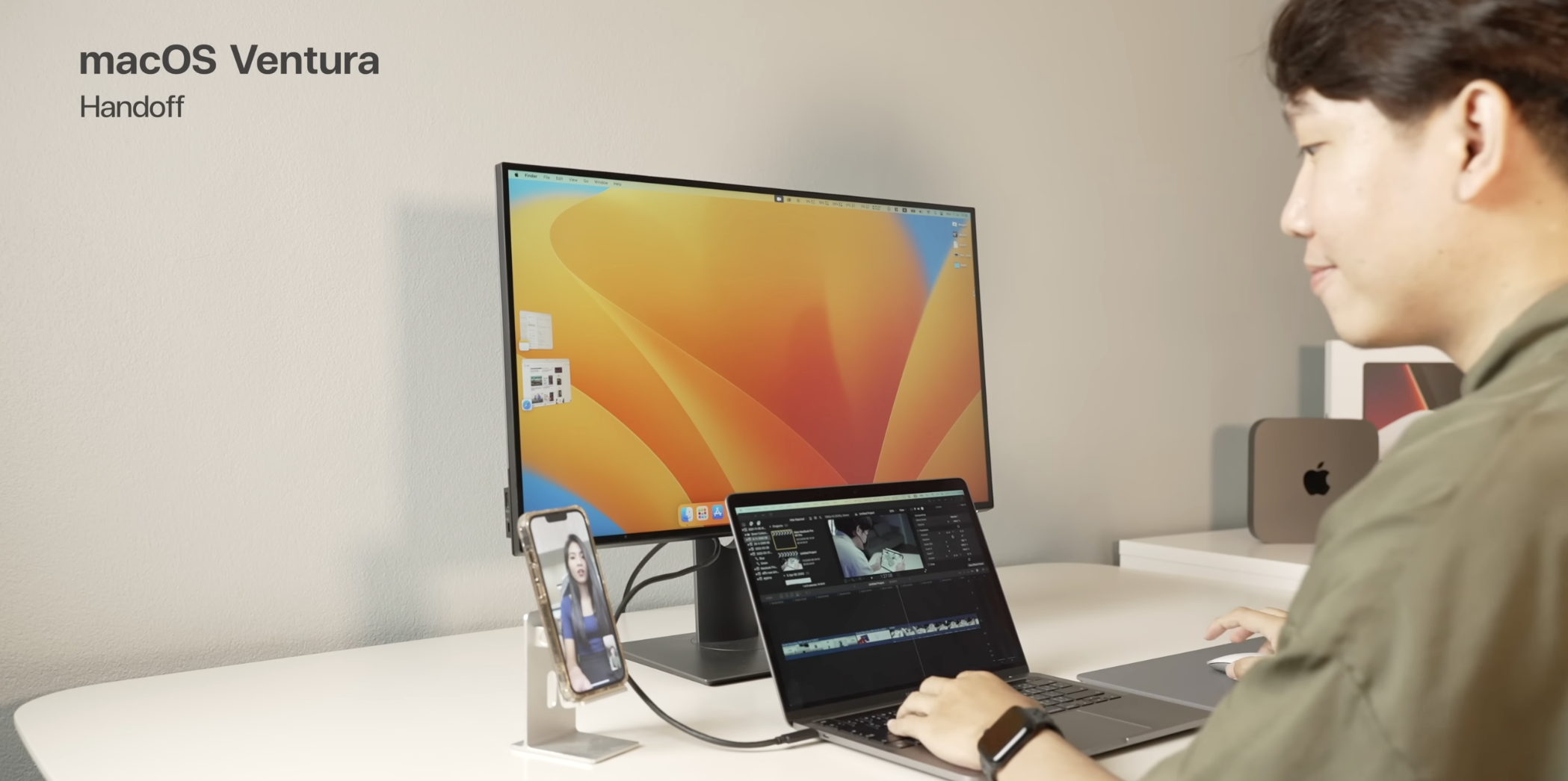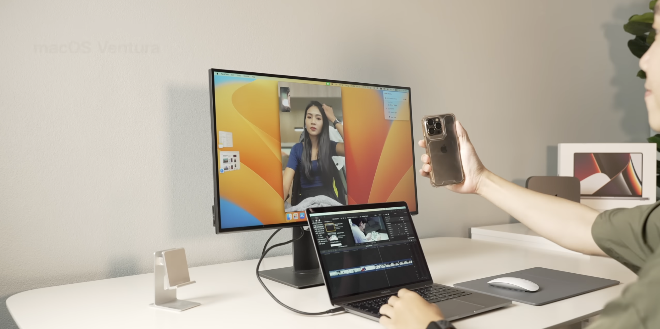 macOS Ventura มาพร้อมฟีเจอร์ Continuity Camera ให้ผู้ใช้สามารถนำ iPhone XR หรือใหม่กว่า (Apple ID เดียวกัน) มาเชื่อมต่อแบบไร้สายเพื่อเป็น Webcam ได้