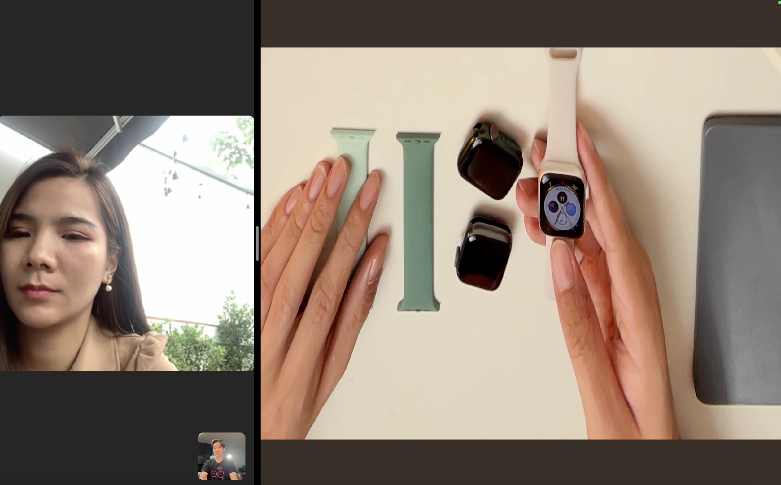 โดยกล้องจะส่องทั้งหน้าของเราและพื้นที่หน้าโต๊ะของเราไปด้วยกัน (iPhone 11 หรือใหม่กว่า) กล้องไวด์สำหรับหน้าเรา กล้องอัลตร้าไวด์สำหรับพื้นที่ที่แสดงผล