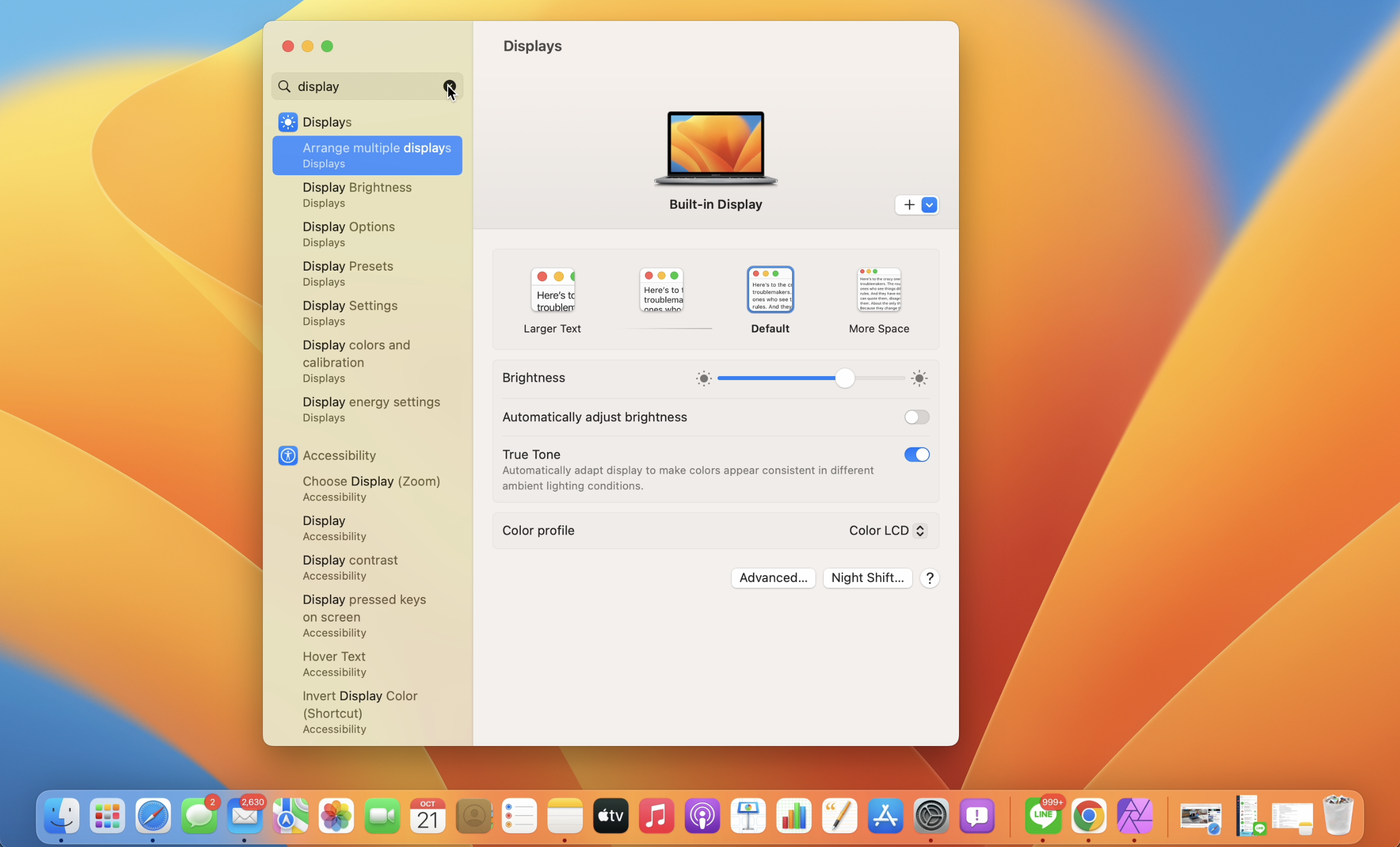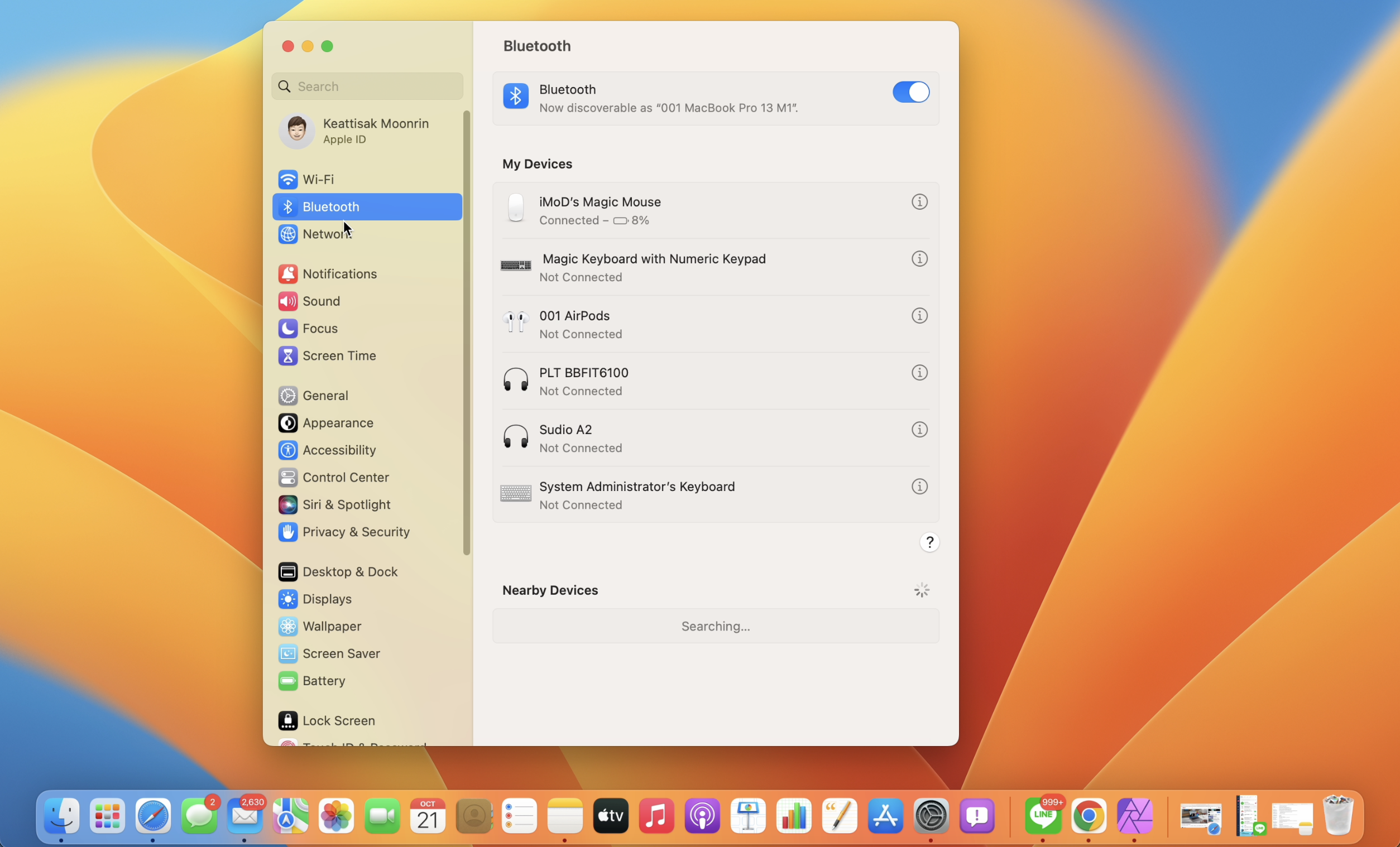 ภาพรวมสิ่งแรกเลยก็คือ การตั้งค่า System Preferences ได้เปลี่ยนชื่อใหม่เป็น System Settings และได้ออกแบบใหม่ โดยแถบเมนูด้านข้างมีลักษณะคล้ายกับใน iPadOS ส่วนด้านขวาจะแสดงการตั้งค่าต่าง ๆ ที่เกี่ยวข้องกับเมนูที่เลือกจากด้านซ้าย