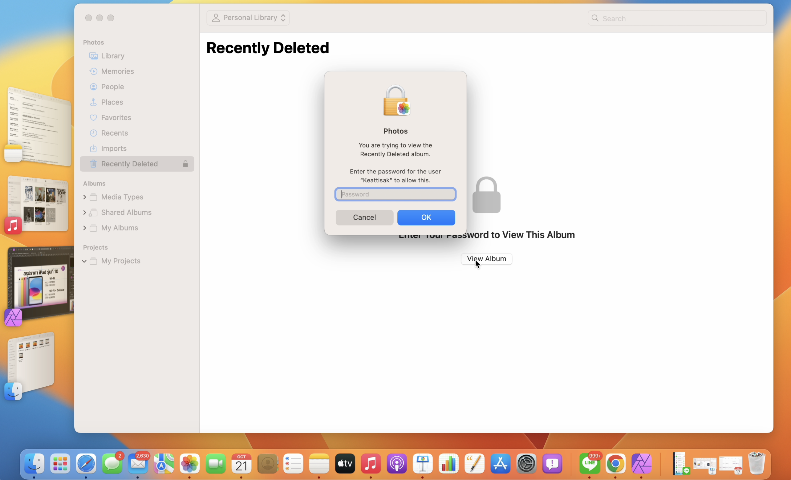 อัลบั้มรูปที่ “ซ่อนอยู่” และ “ที่เพิ่งลบล่าสุด” จะถูกล็อคไว้เป็นค่าเริ่มต้น