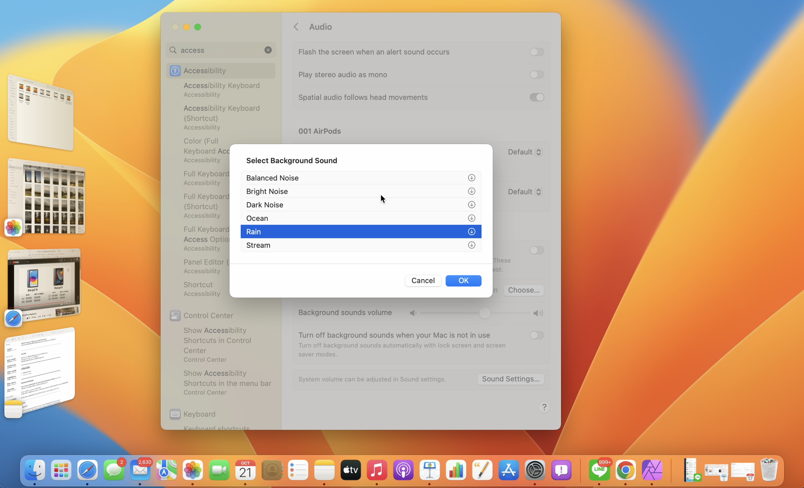 macOS Ventura รองรับเสียงเบื้องหลังเช่นเดียวกันกับ iOS โดยสามารถเข้าไปตั้งค่าได้ที่ System Settings > Accessibility > Audio > Background Sound