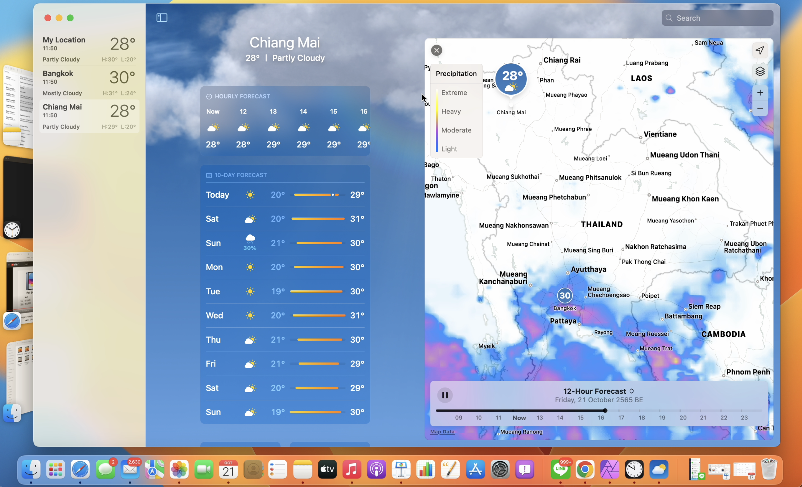 แอปสภาพอากาศคล้ายกันกับใน iPad บอกข้อมูลสภาพอากาศ การคาดคะเนปริมาณน้ำฝน ที่สามารถดูข้อมูลได้เต็มตามากขึ้น